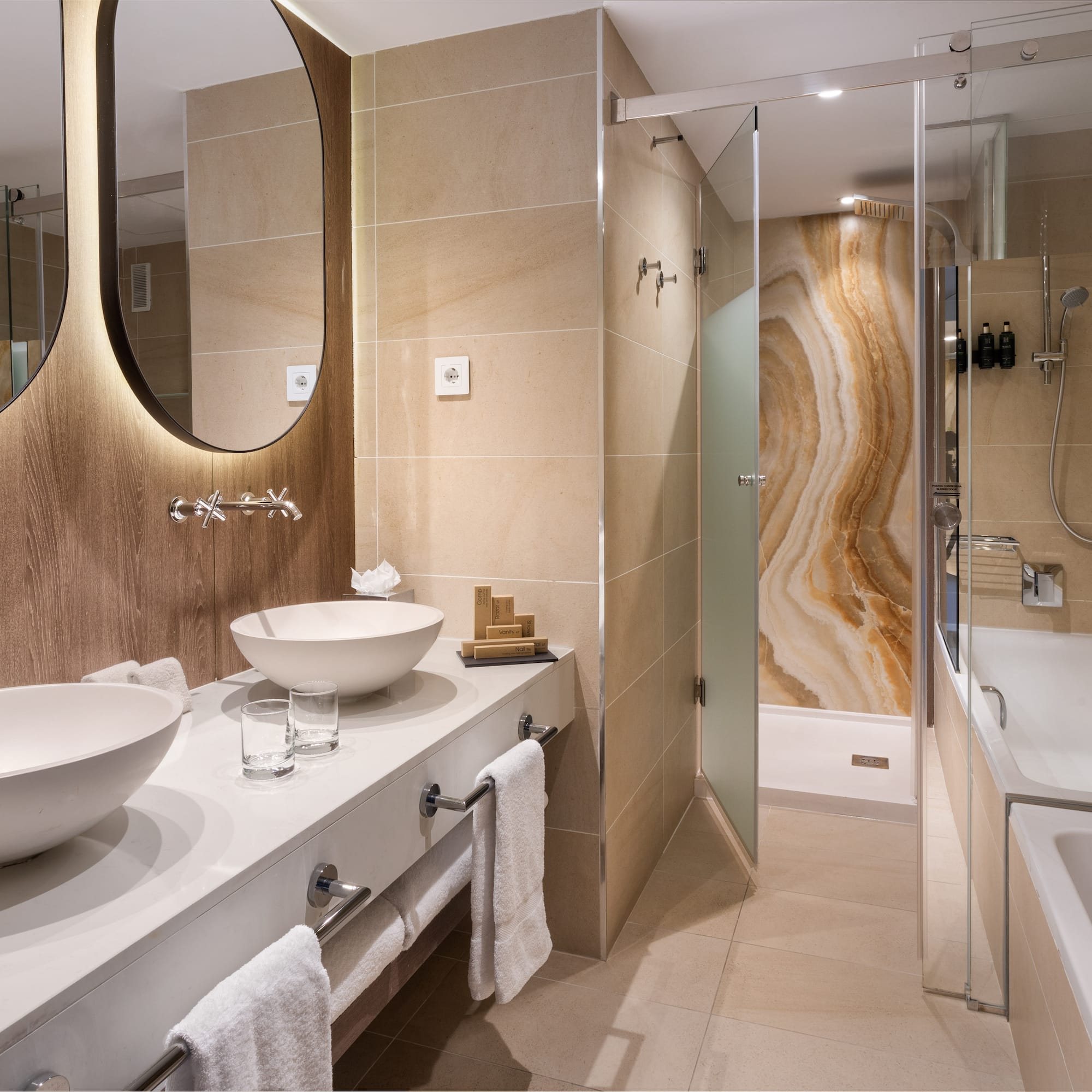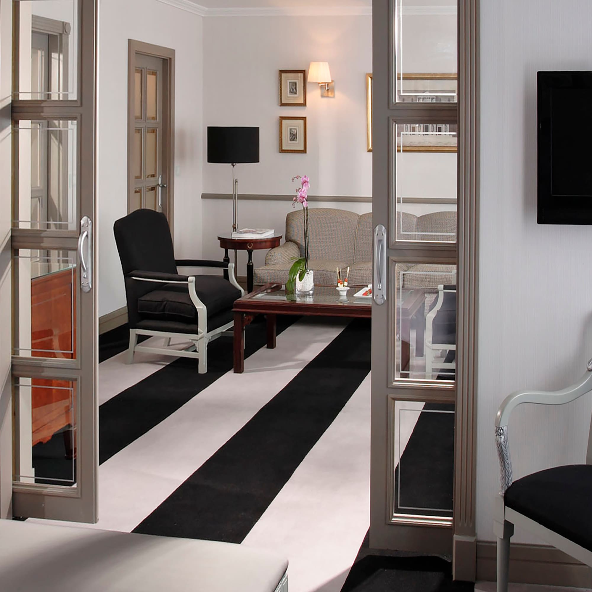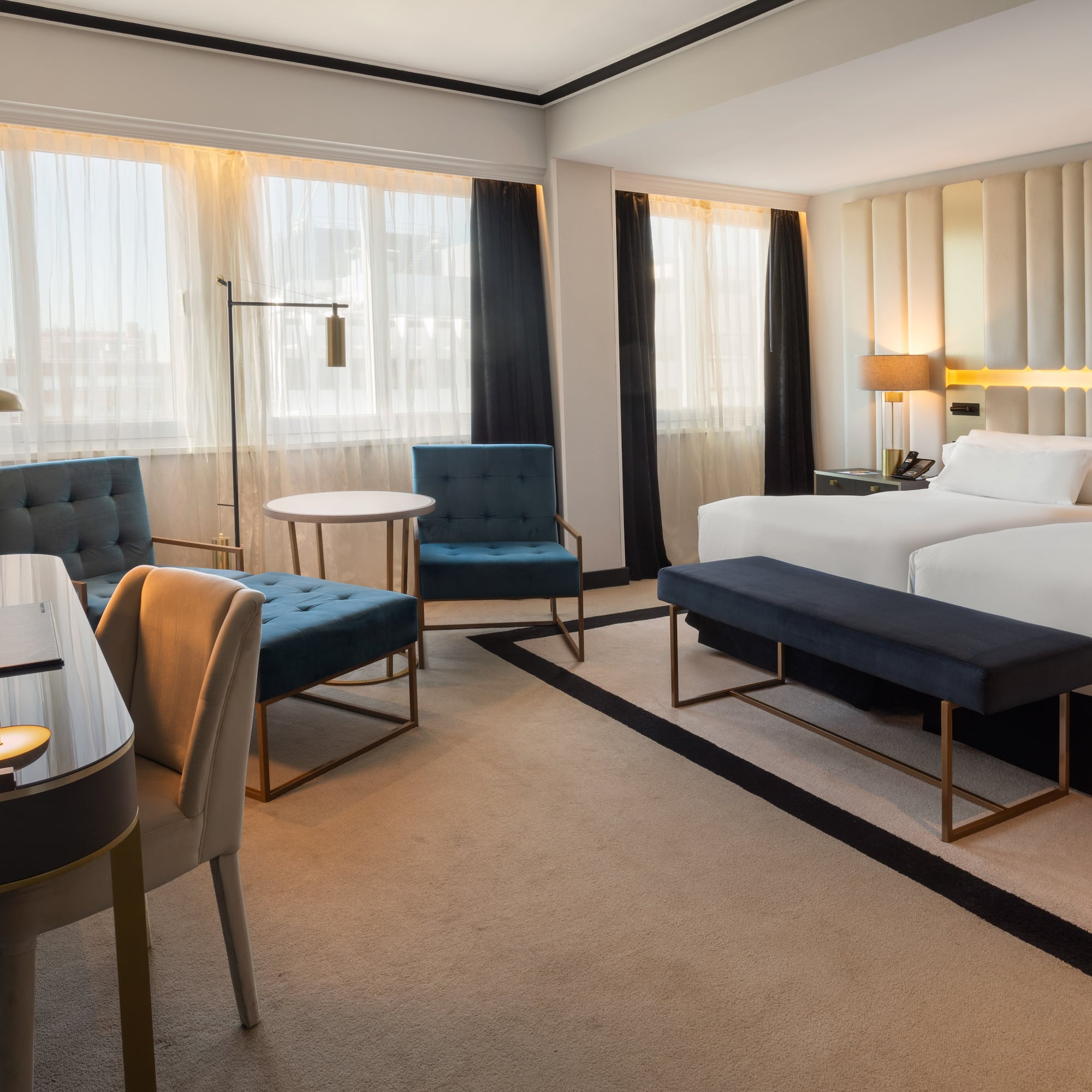 An exceptional room where refinement, design and superior comfort go hand in hand. A room full of light that offers great views of the city and has a bedroom with a queen-size bed or two single beds and a full bathroom.
