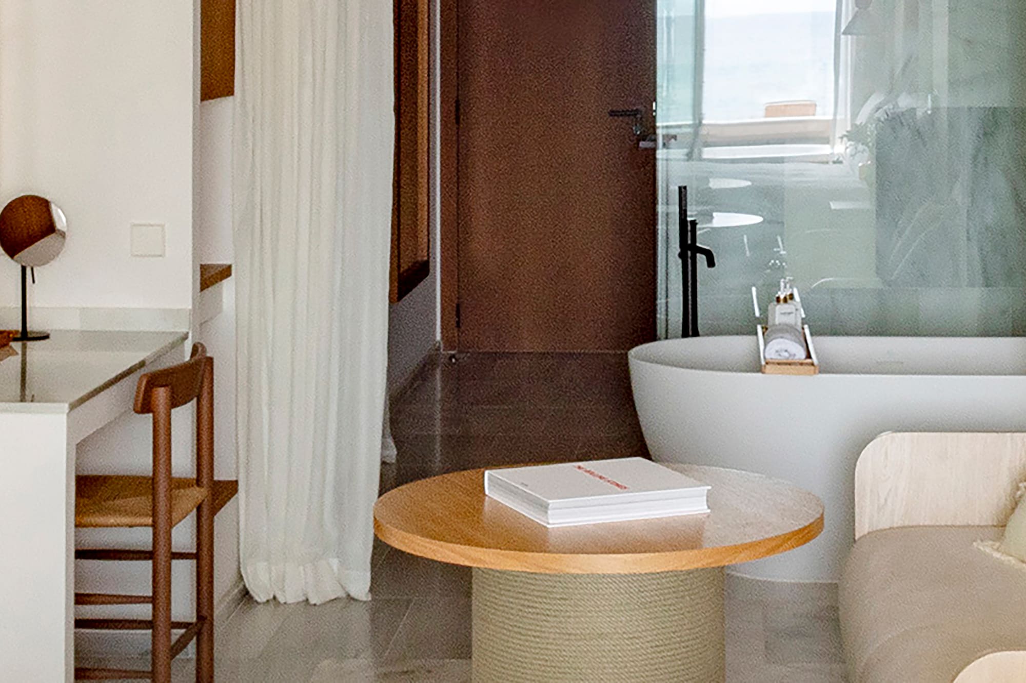 The definition of Mediterranean luxury and exclusivity is found in this majestic suite with spacious living room with sofa, elegant Balearic design and magnificent frontal sea views. With an outdoor bathtub on the terrace, it becomes your own spa right on the beach of Santo Tomás.