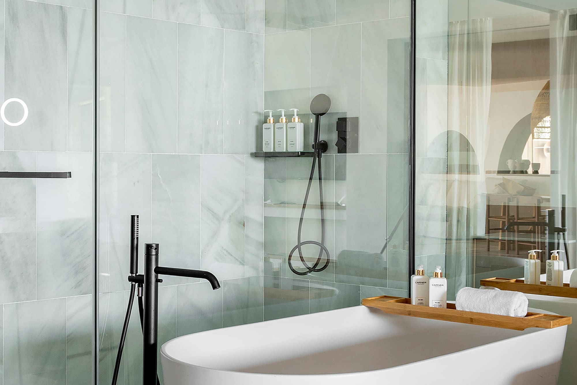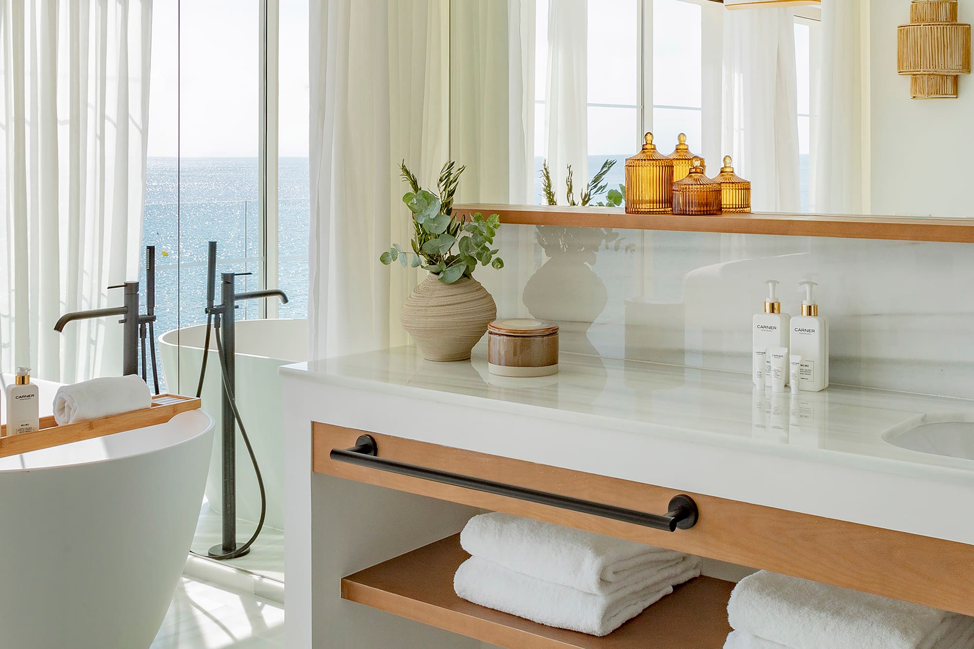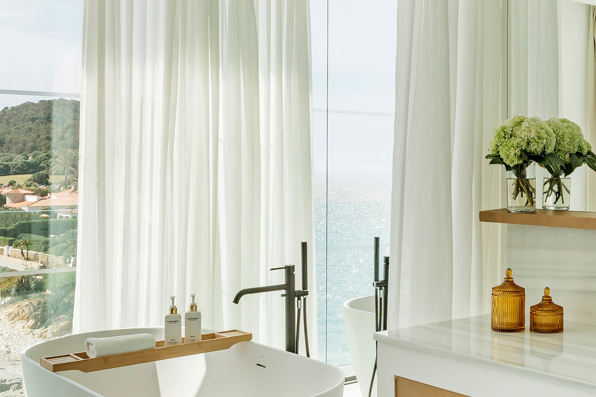 Suite with views of the Mediterranean, perfect for families and groups of friends thanks to its great spaciousness. The result of the connection of a Master Suite and a Supreme room through a fantastic terrace equipped with a bathtub, maximising space and comfort.
