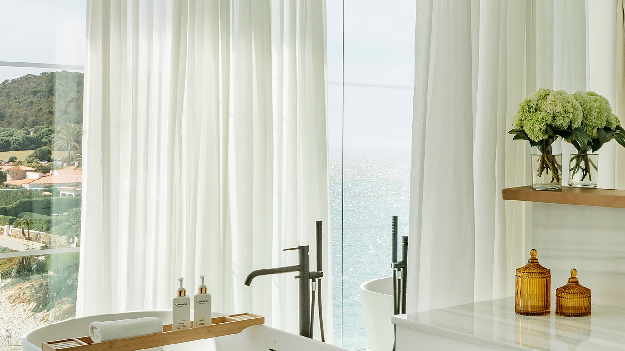 With an interior design closely related to the Menorcan style, it is perfect for family trips thanks to its spaciousness and facilities. This suite with sea view and bathtub on the terrace results from the connection of a Junior Suite and a Supreme room.
