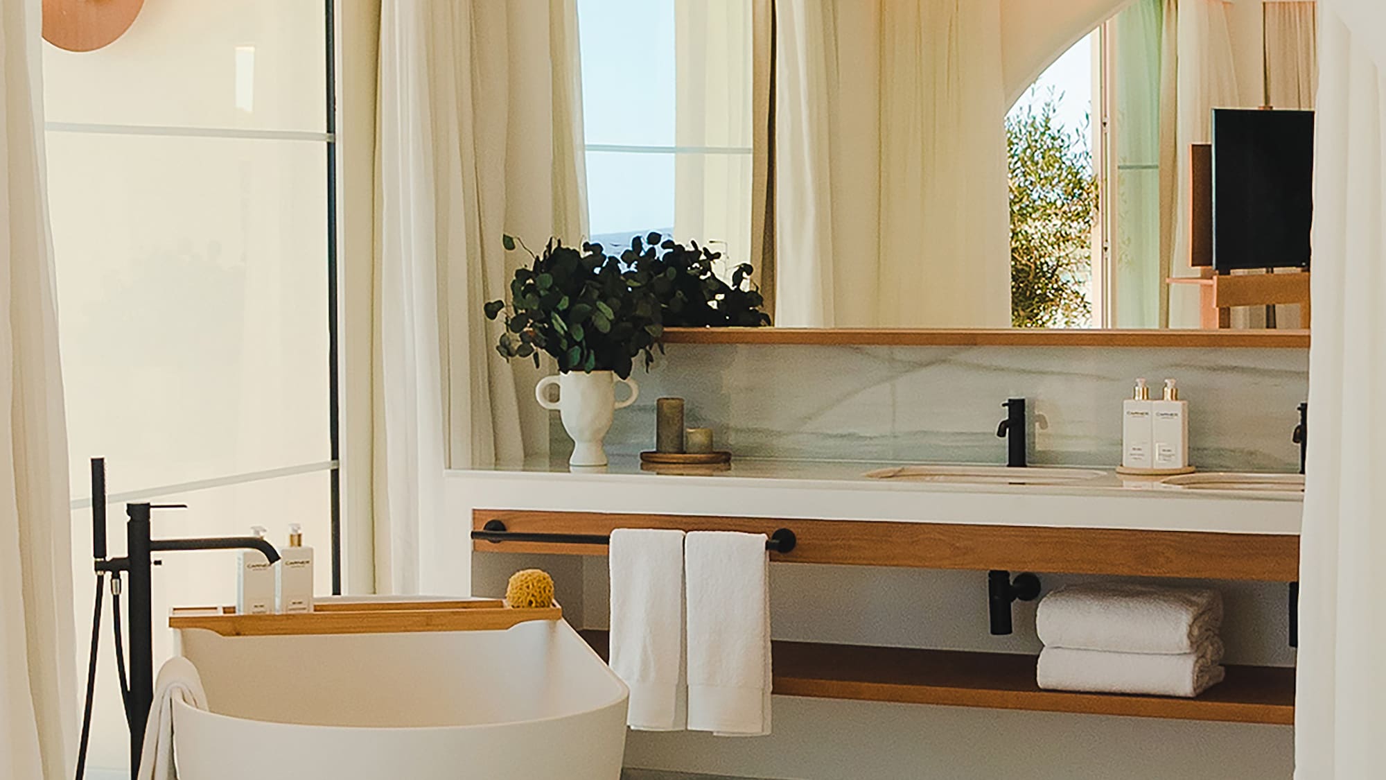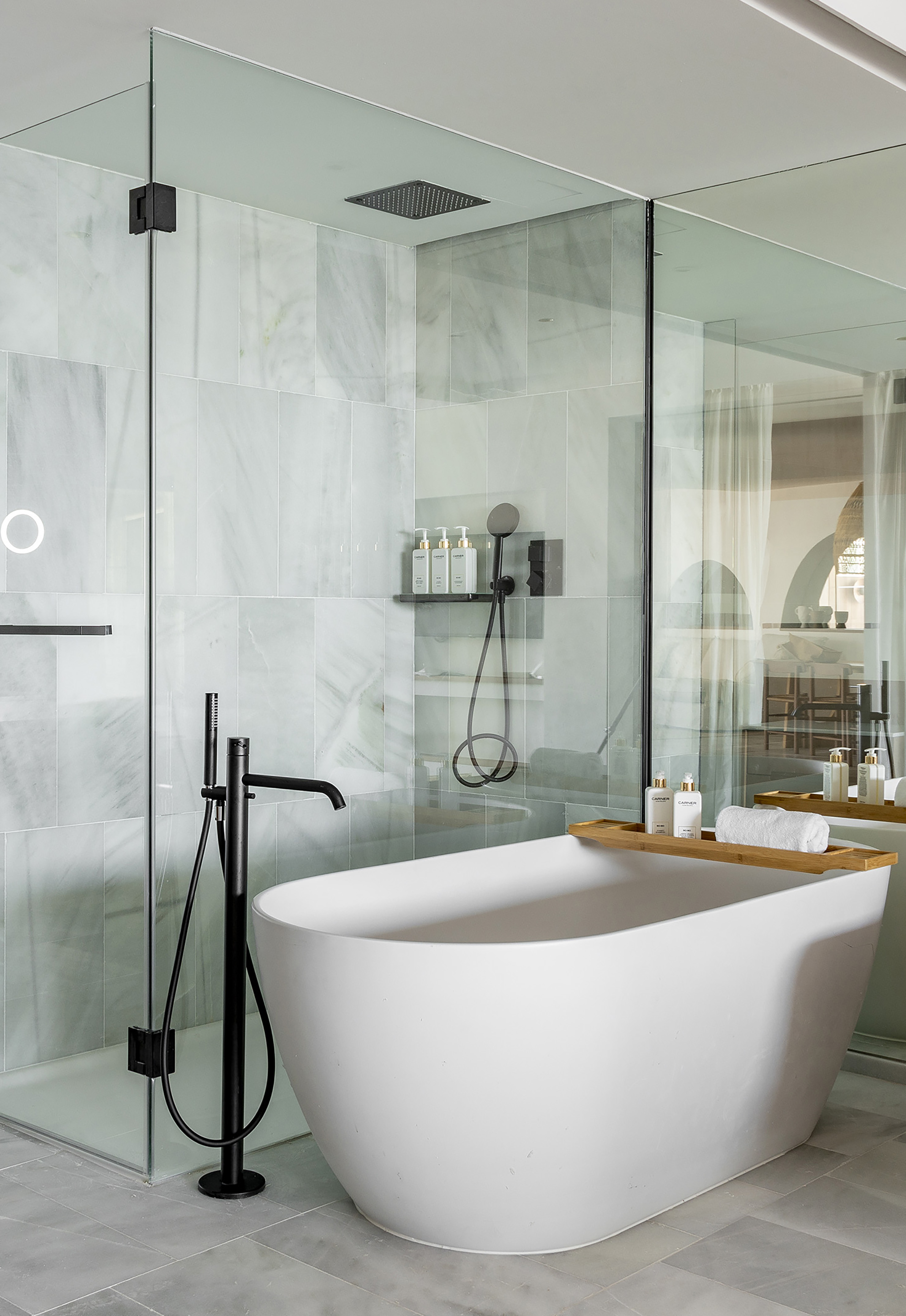 Suite with views of the Mediterranean, perfect for families and groups of friends thanks to its great spaciousness. The result of the connection of a Master Suite and a Supreme room through a fantastic terrace equipped with a bathtub, maximising space and comfort.