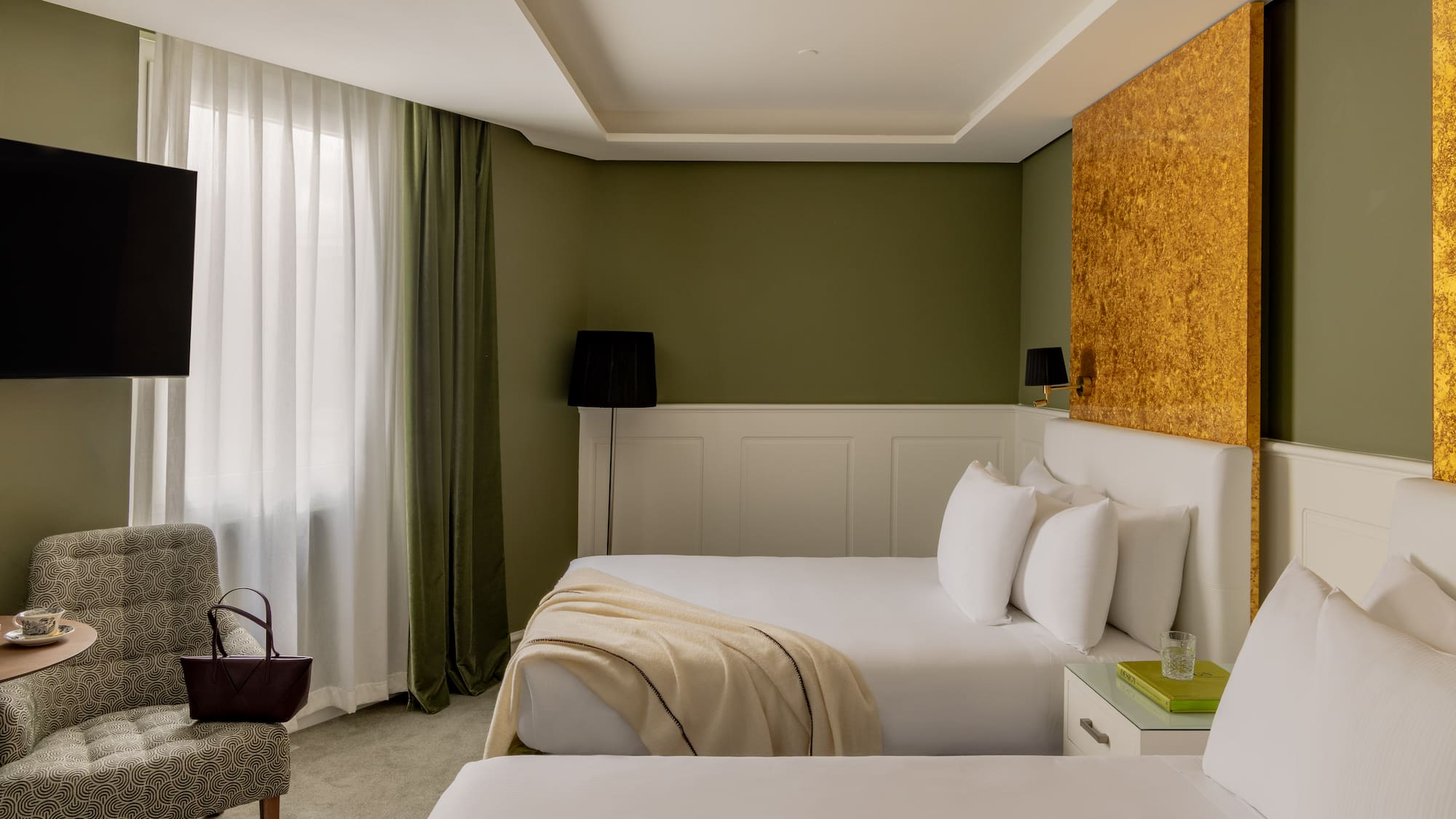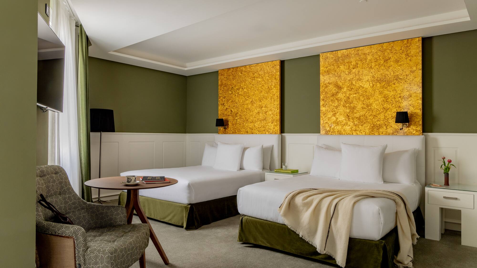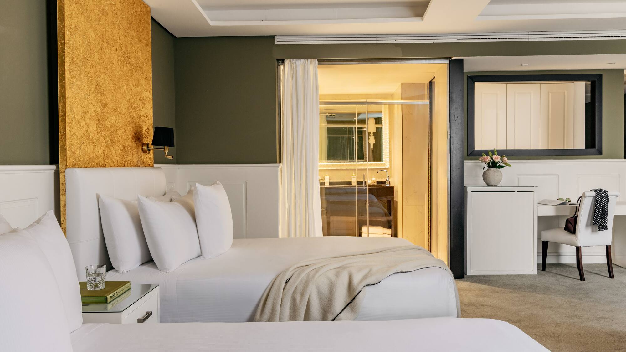 With comfortable, welcoming spaces and luxury fabrics, this room perfectly combines two bedrooms and two bathrooms and boasts all the latest technology and furniture made of premium-quality materials.