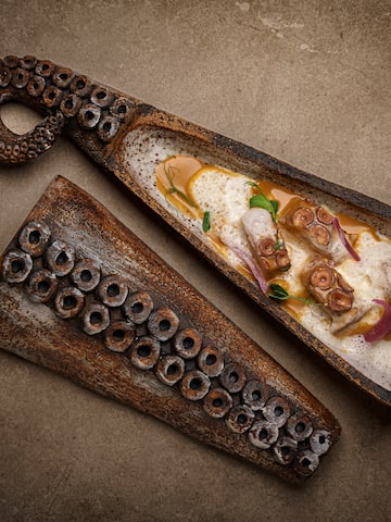 Located in the heart of Gran Meliá Palacio de Isora, Dos Naifes - Corte Atlántico focuses on innovative Atlantic cuisine inspired by the ocean, which respects marine biodiversity and pays tribute to local fishing culture. A journey where freshness, traceability and sustainability are key features, allowing diners to enjoy a culinary immersion that is even more enjoyable as they admire the sunset over the Atlantic. The restaurant in the exclusive RedLevel space has received a Sol Repsol 2025 award.