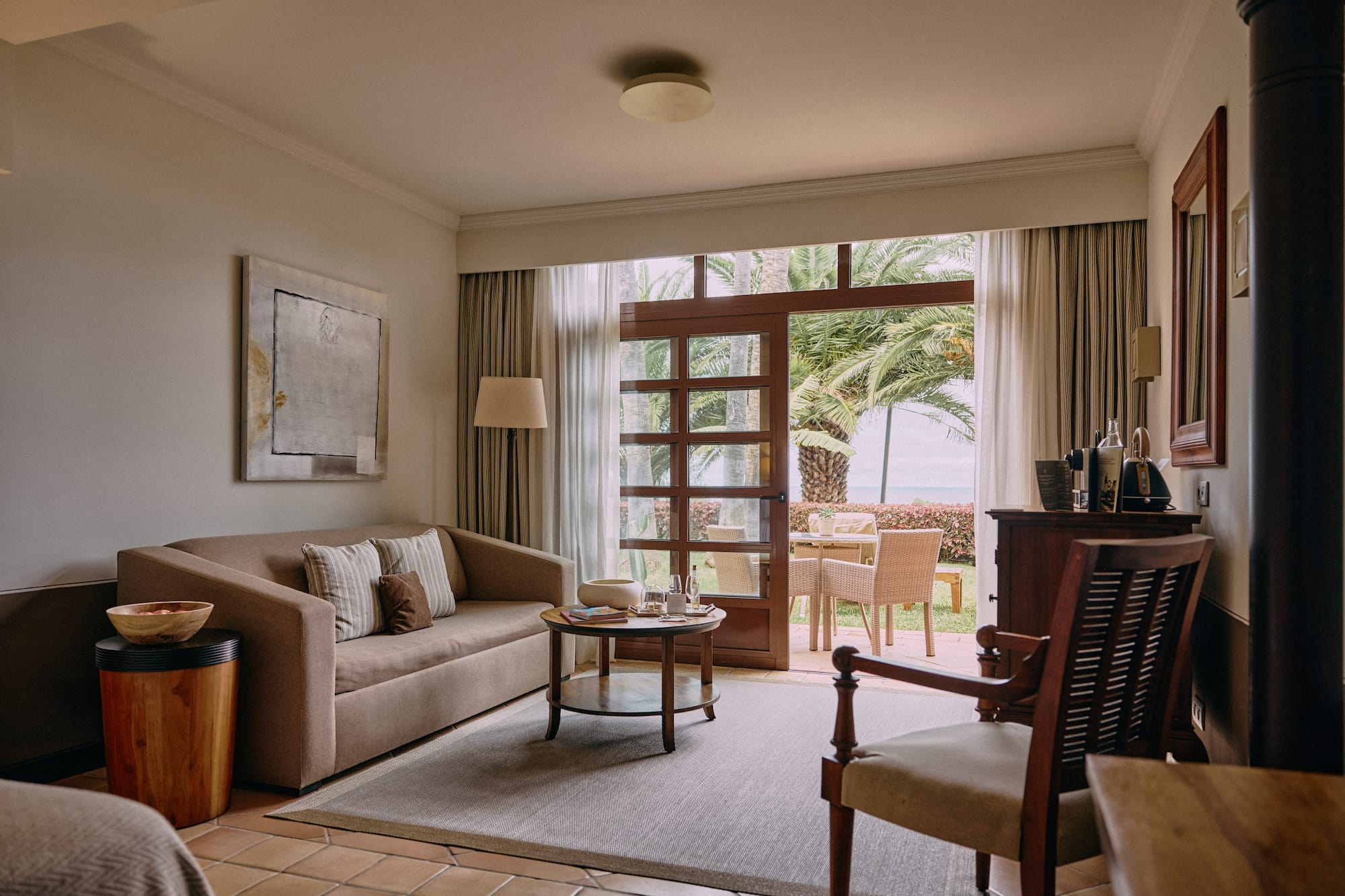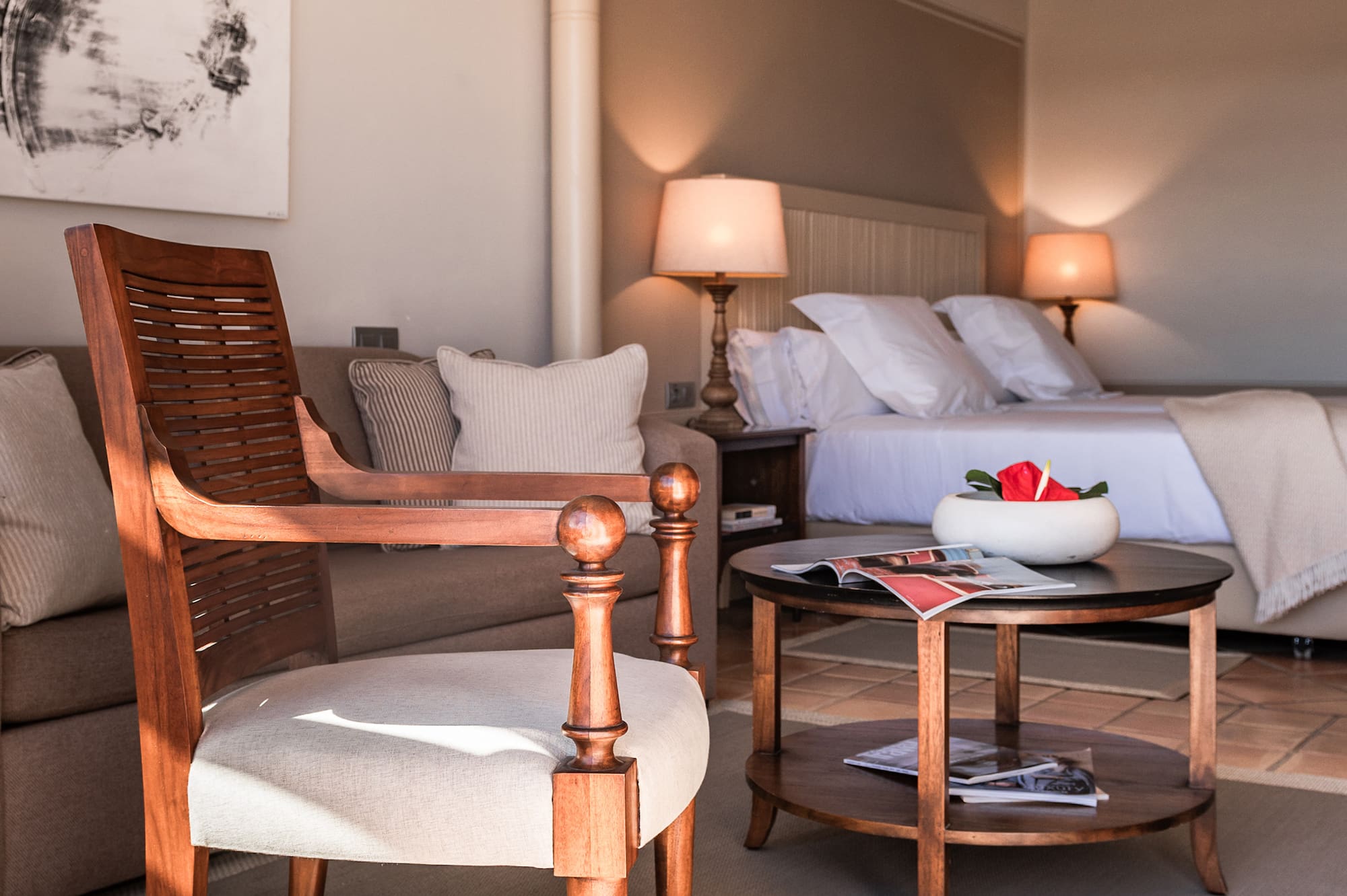 Trust us to guarantee your rest. A spacious and bright colonial-style room with a bedroom with two single beds, a lounge with sofas, and a beautiful terrace. The pleasures of being an adult in Tenerife.