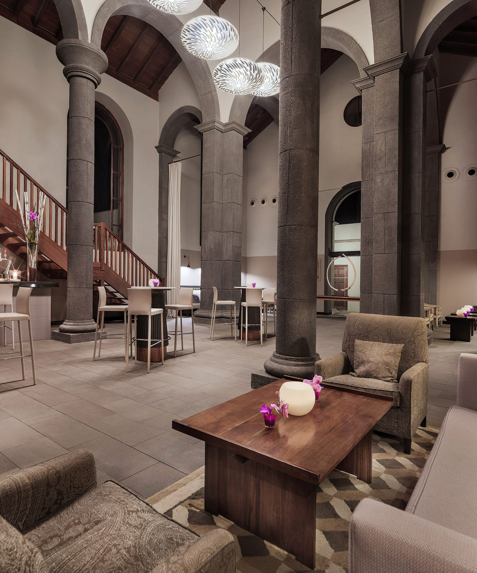 Enjoy drinks and cocktails in a fascinating ambience, where the architecture of a church with columns, semi-circular arches and contemporary decoration creates a magical experience.