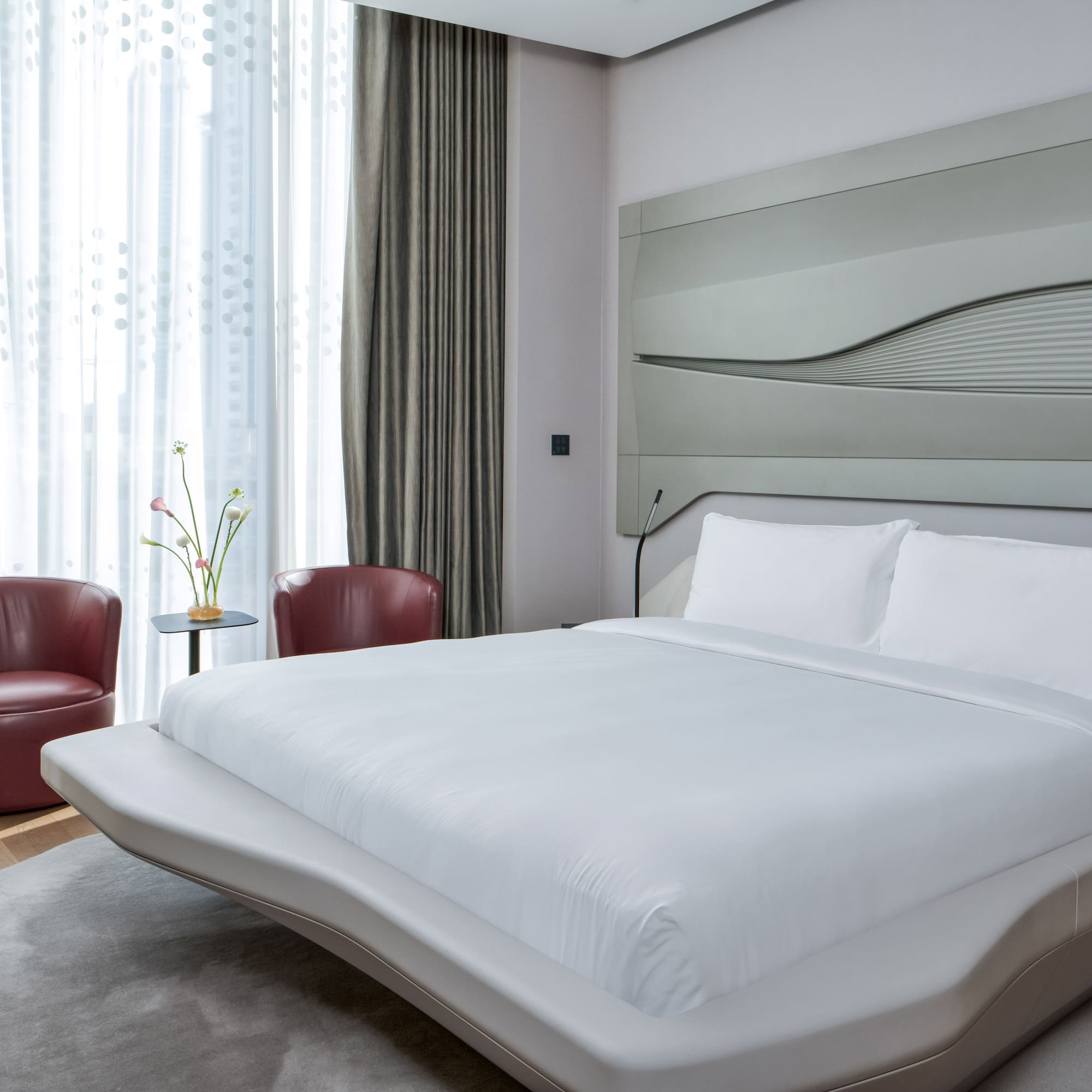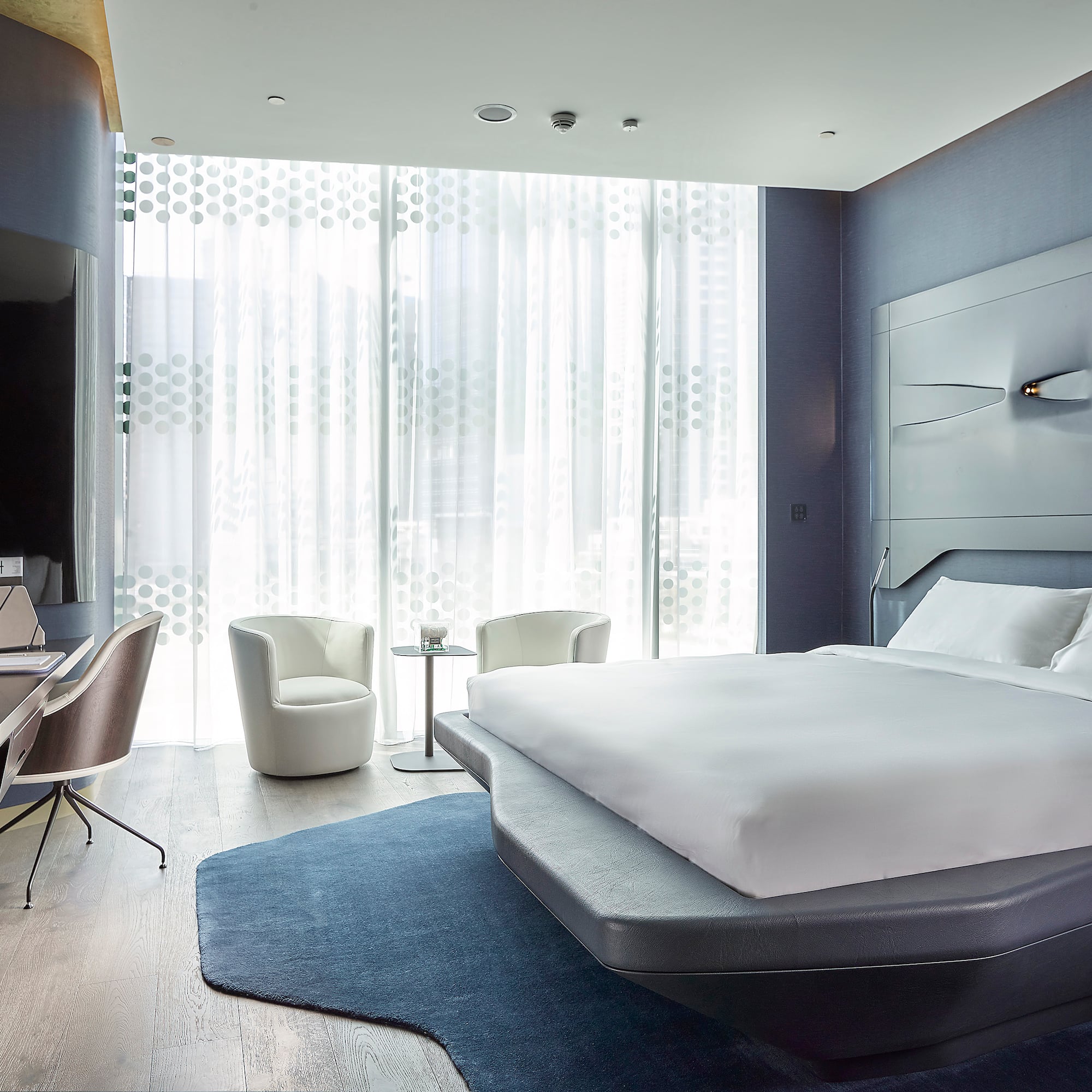 Stay in this signature Zaha Hadid-styled room where no detail is spared. Think big in this spacious room with stunning views of the city. All set to share the experience of coming to ME Dubai.