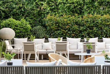 Escondido en el hotel Palacio de los Duques Gran Meliá, encontrarás otra de las joyas en cuanto a terrazas se refiere. Un rooftop en pleno corazón de Madrid situado en la 7ª planta, que brinda el máximo lujo con vistas panorámicas impresionantes de la ciudad, incluyendo el Palacio Real y la Catedral de la Almudena, edificios emblemáticos del Madrid de los Austrias. La terraza del Jardín de los Duques cuenta con una piscina, jacuzzi y un bar donde se pueden degustar sofisticados cócteles y bebidas selectas.