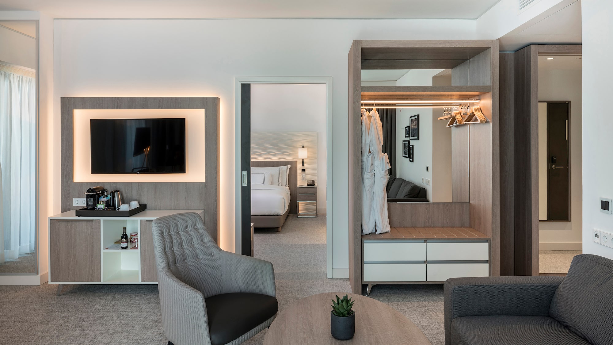 Descubre una suite extraordinaria con detalles que marcan la diferencia. Mejores vistas, más espacio y un servicio personalizado en una suite exclusiva con balcón, dormitorio, sala de estar y ducha de efecto lluvia.