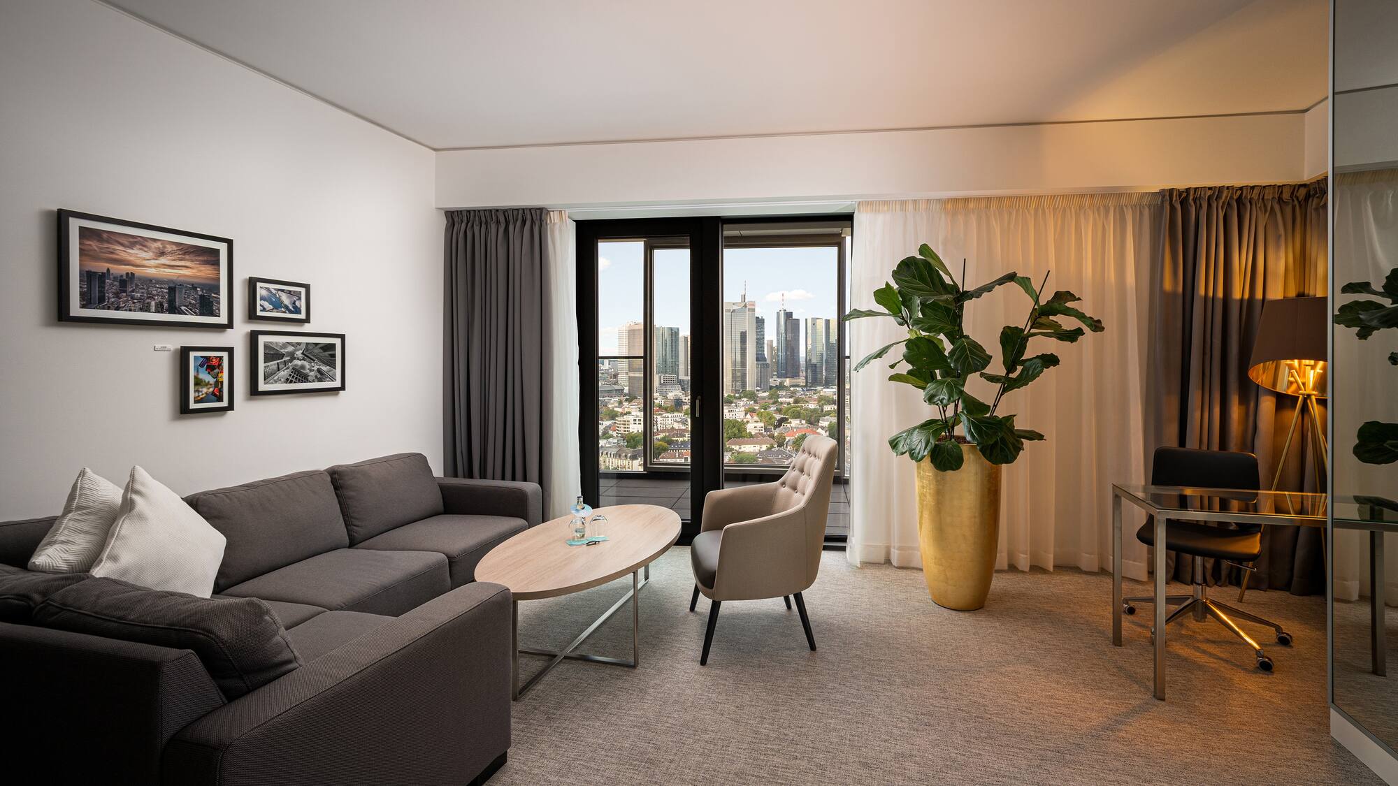 Vive una experiencia inolvidable en esta habitación desde donde poder admirar tanto de noche como de día, el magnífico skyline de la ciudad de Frankfurt. Con una espectacular ducha efecto lluvia y una fabulosa cama king-size, será irresistible.