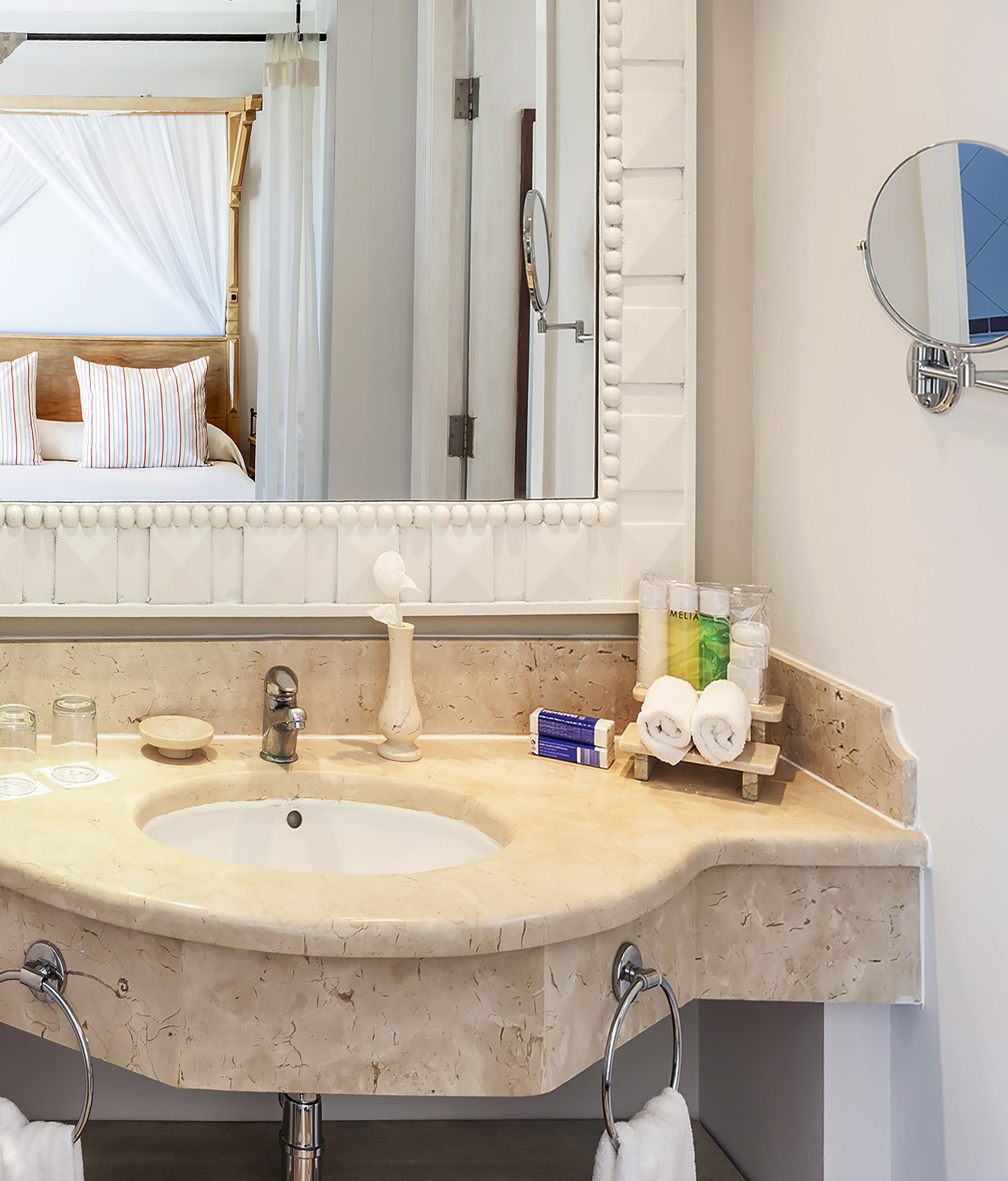 Despertar frente al inmenso mar azul es un premio que sin duda mereces. Te lo ofrecemos en este espacio, equipado además con mobiliario de alta calidad y detalles que incluyen minibar con reposición diaria, escritorio y artículos de baño.