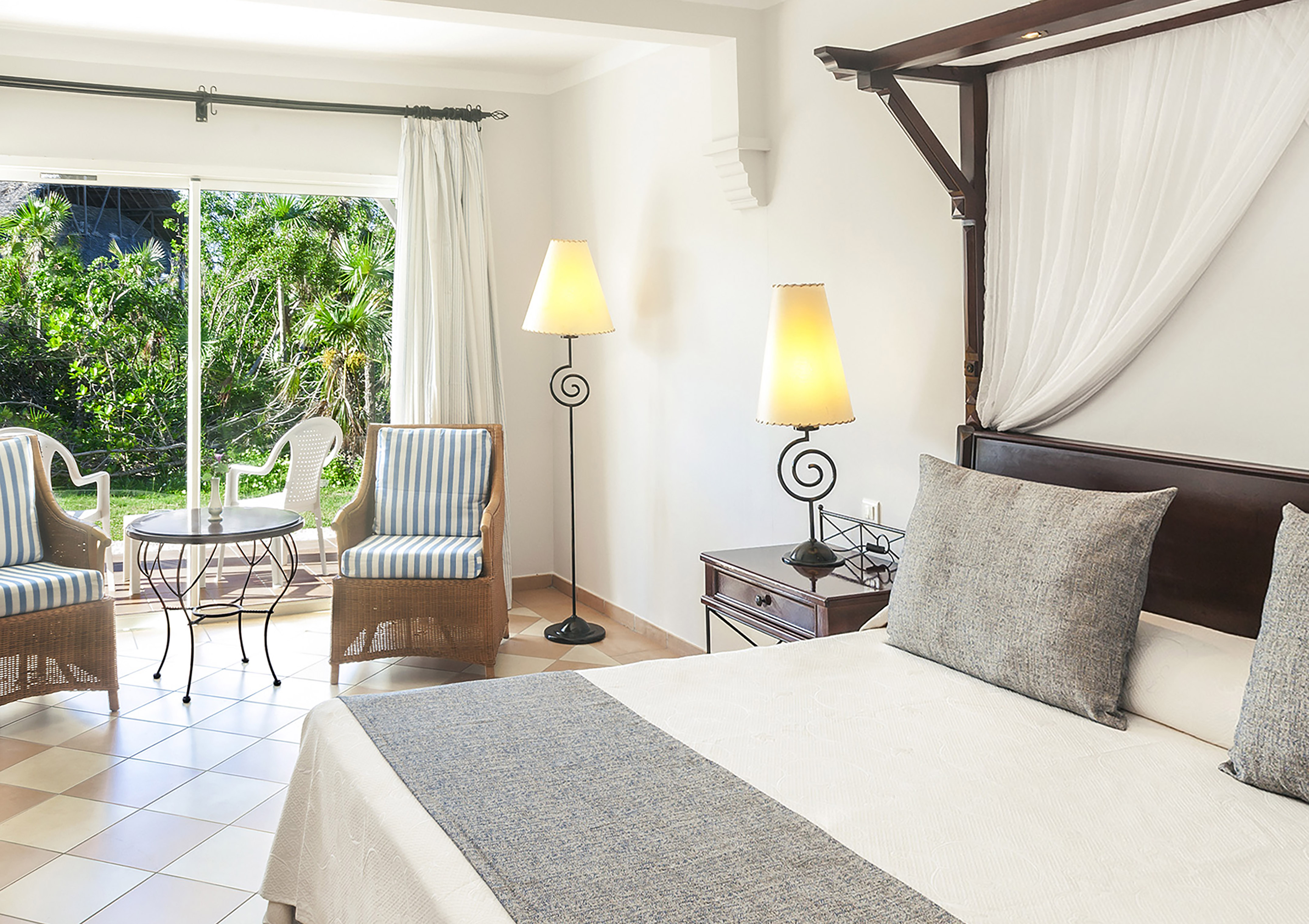 Excelente para compartir con tu pareja momentos de calma y privacidad. Con vistas al jardín tropical, en la habitación se respira un ambiente de calidez y comodidad, gracias a la decoración en colores claros y a la luz natural proveniente del amplio balcón.