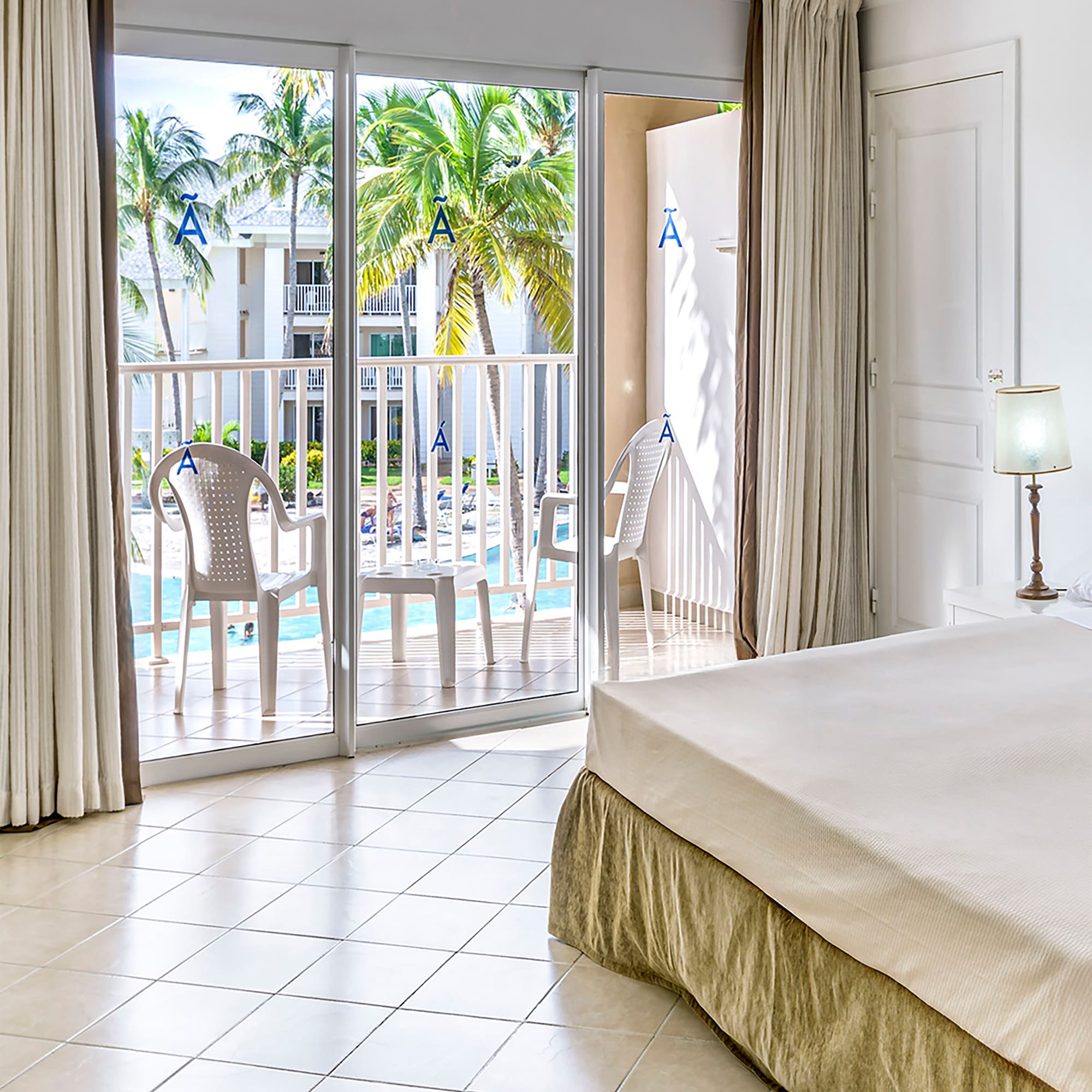 La fresca brisa del mar y el verde de los jardines son el complemento perfecto de esta amplia habitación con dos dormitorios y dos baños, terraza o balcón, sala y servicios complementarios durante la estancia.
