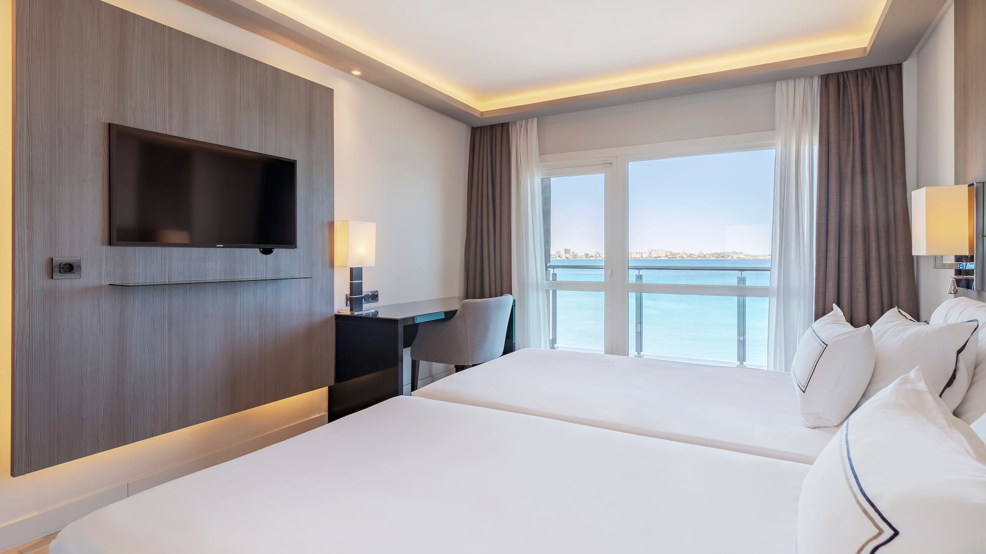 Entra en el universo The Level solo para adultos desde esta impresionante estancia asomada al mar. Deja que la luz inunde una estancia equipada con cama doble, TV LED de 40’’ y un completo escritorio desde el que trabajar contemplando el Mediterráneo. Y descubre las instalaciones exclusivas y la atención personalizada de The Level.