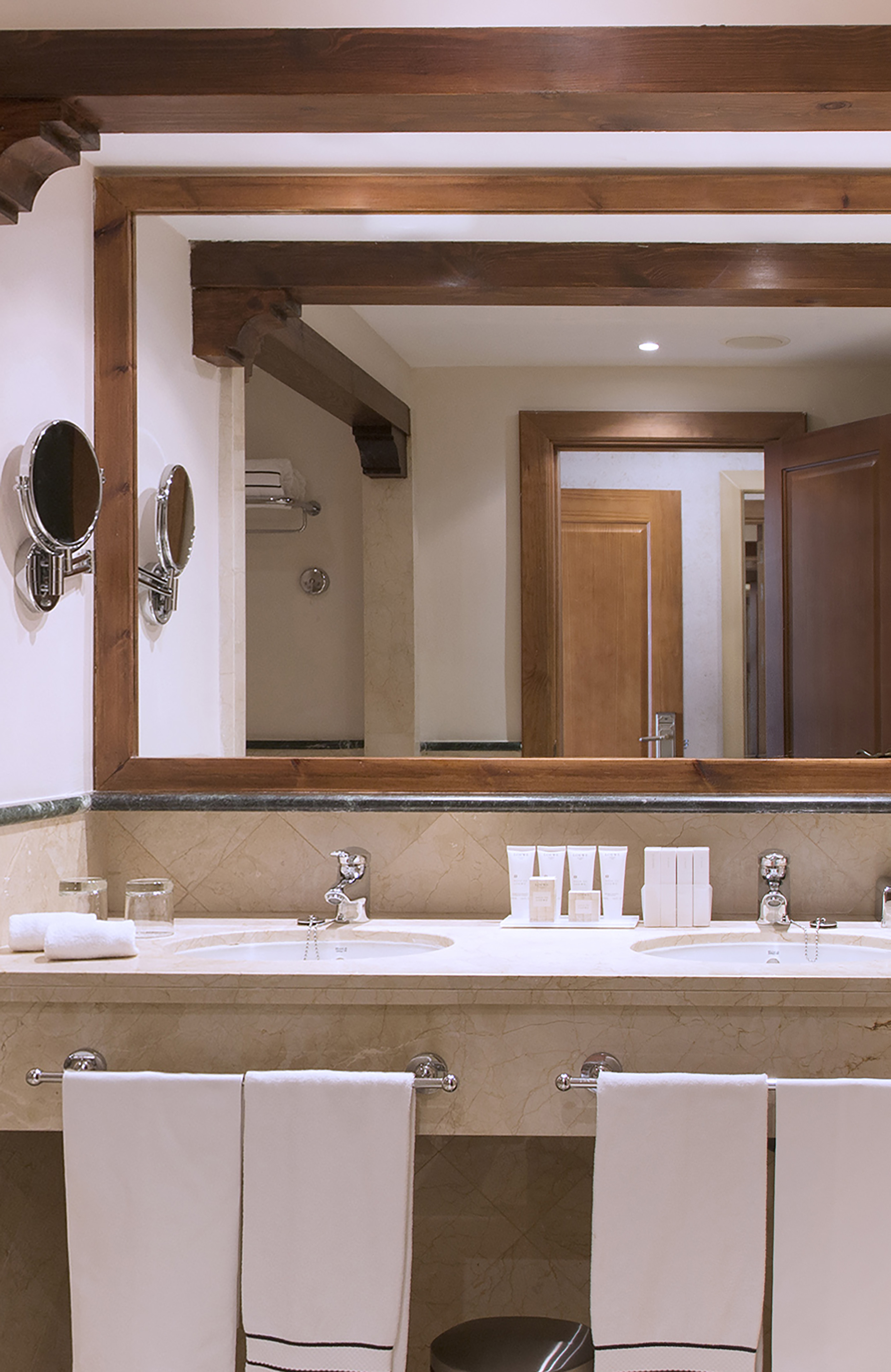 Una suite espaciosa y acogedora, con un moderno diseño y exquisita decoración. Cuenta con un coqueto salón independiente y una amplia terraza donde contemplar las mejores vistas del entorno del hotel.