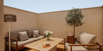 Una habitación ideal para conectar con la esencia de Casa de las Artes Meliá Collection, donde priman los materiales nobles y los colores cálidos. Dispone de vistas al patio del hotel y un equipamiento exclusivo para asegurarle el máximo confort durante su estancia en Madrid.