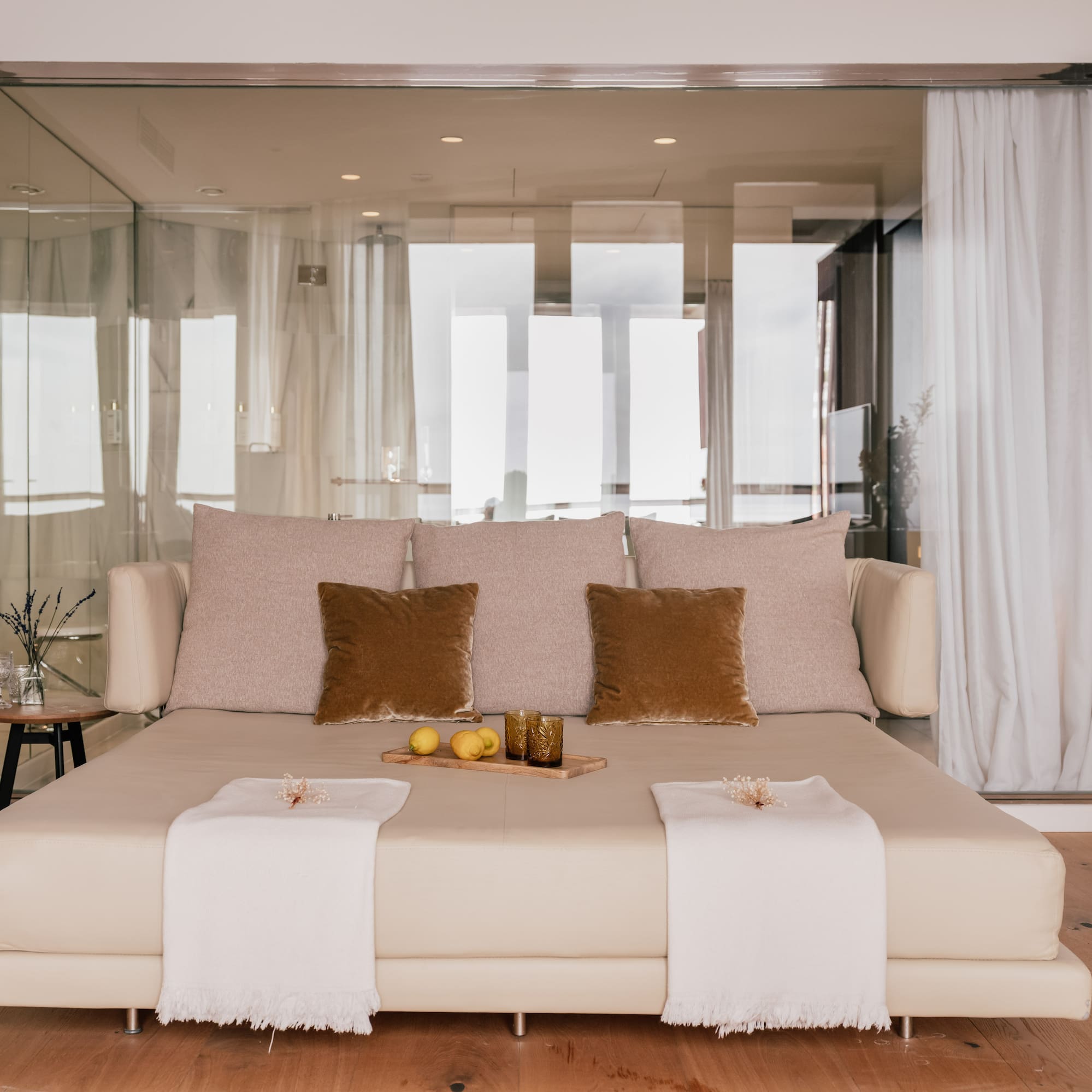 La reserva de esta master suite incluye acceso ilimitado a la zona de aguas de nuestro Spa by Clarins para que tenga una experiencia inolvidable en Hotel de Mar Gran Meliá.