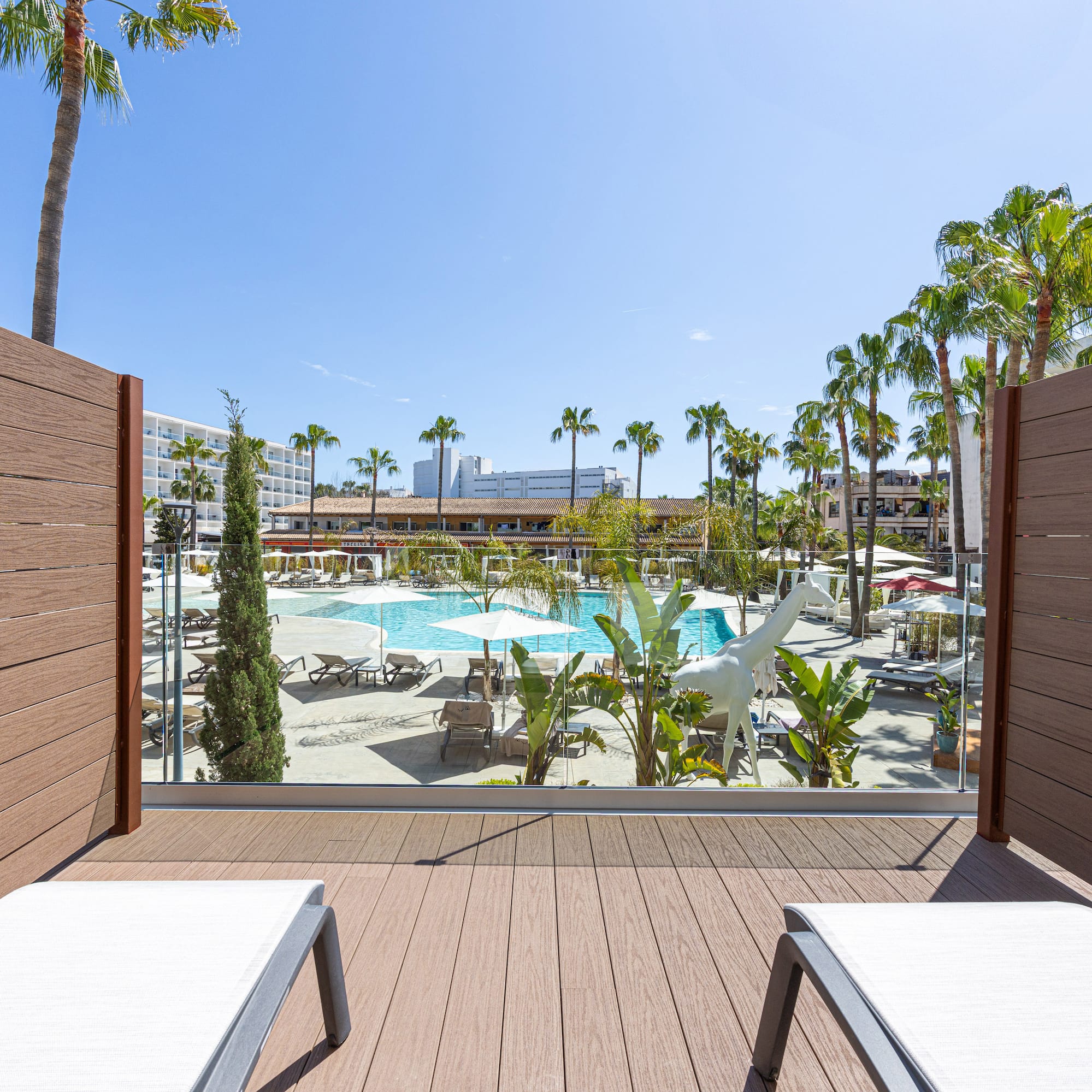 Déjanos cuidarte en una junior suite innovadora, con una distribución dinámica y funcional. Dispone de terraza con vistas a la piscina, zona de relax con sofá cama y un baño totalmente equipado.