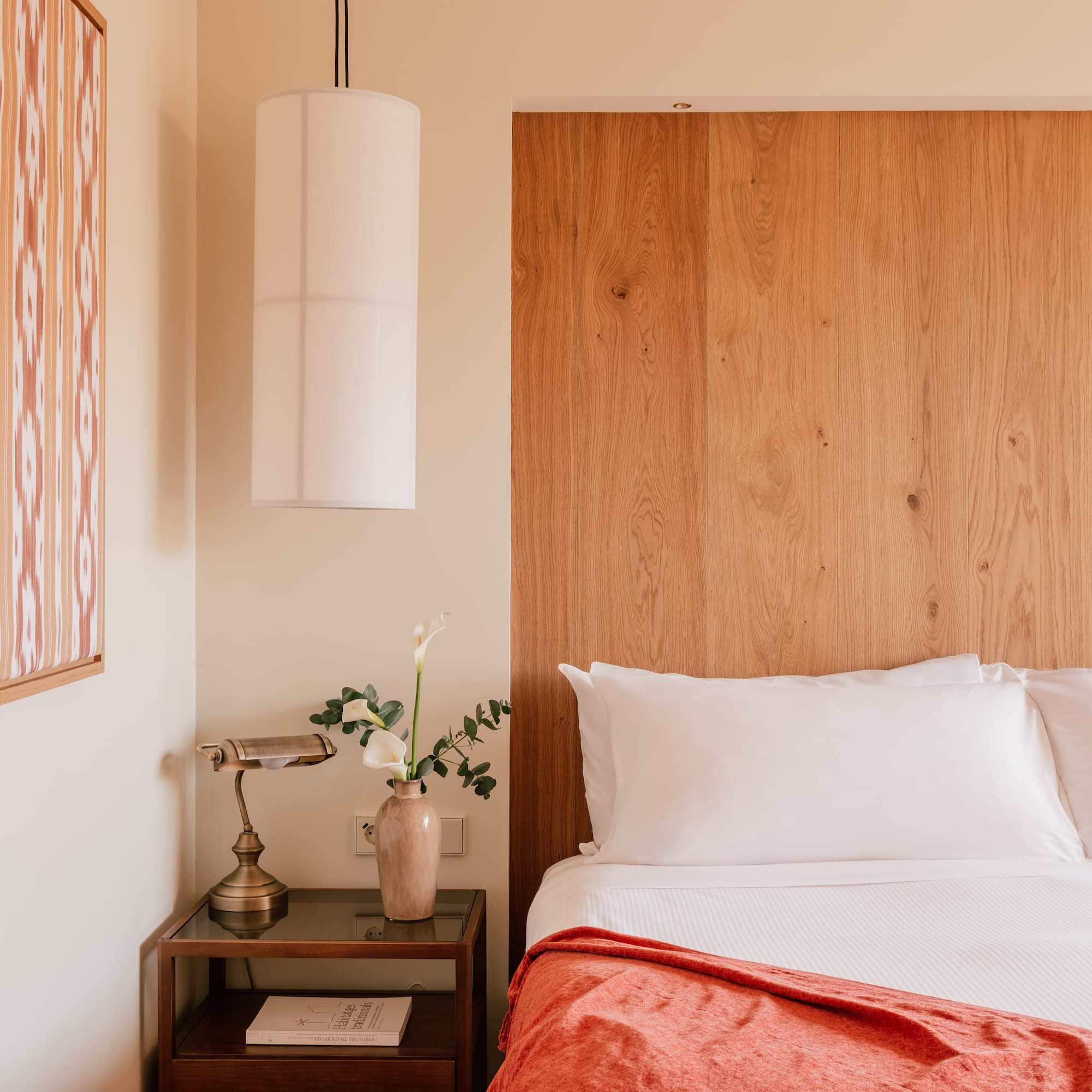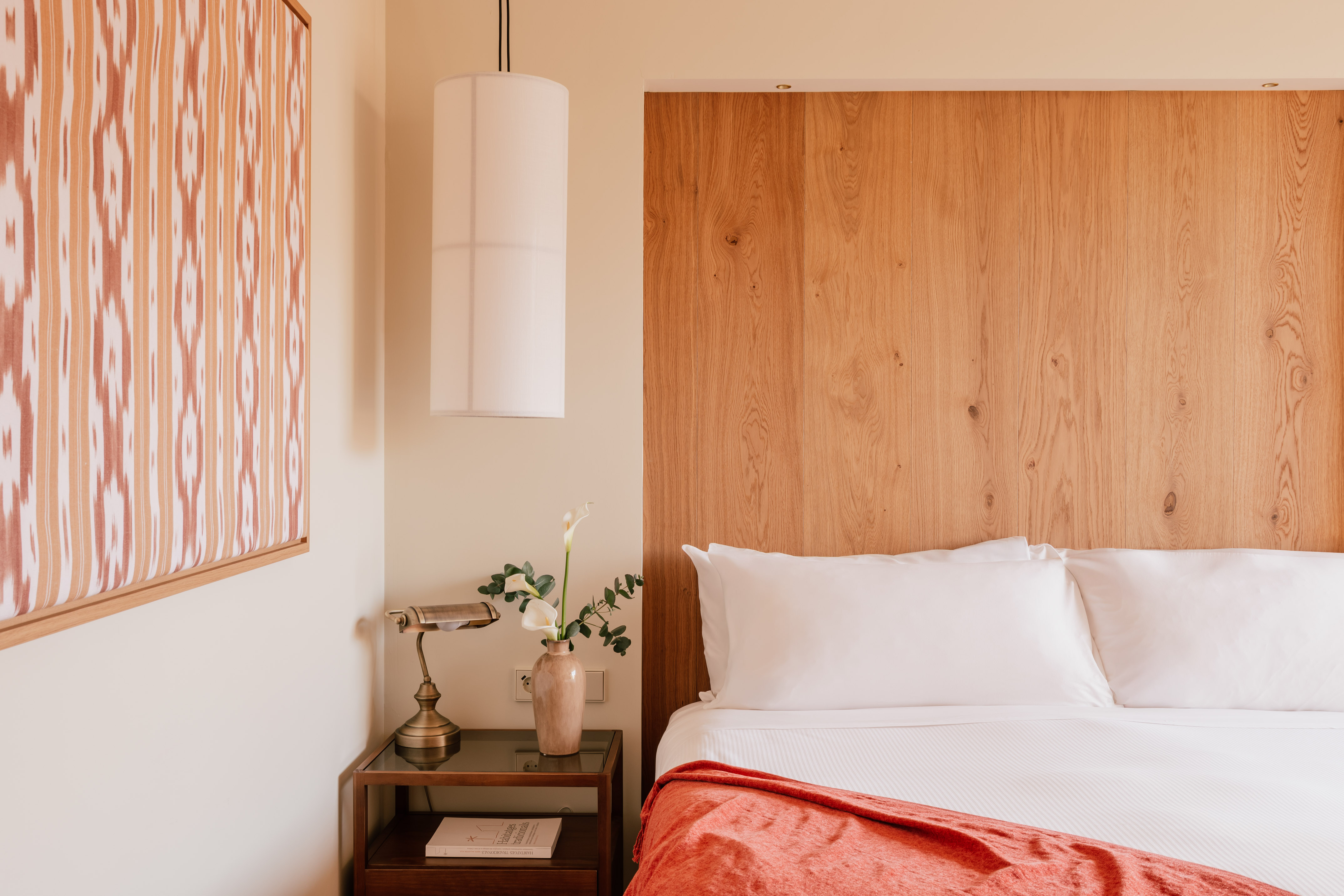 Vistas panorámicas al mar y a la Catedral desde una amplia terraza. En el interior, un diseño de lujo tradicional y acogedor con cabecero de tela, sábanas sedosas, muebles de madera noble, y cuidados de belleza.
