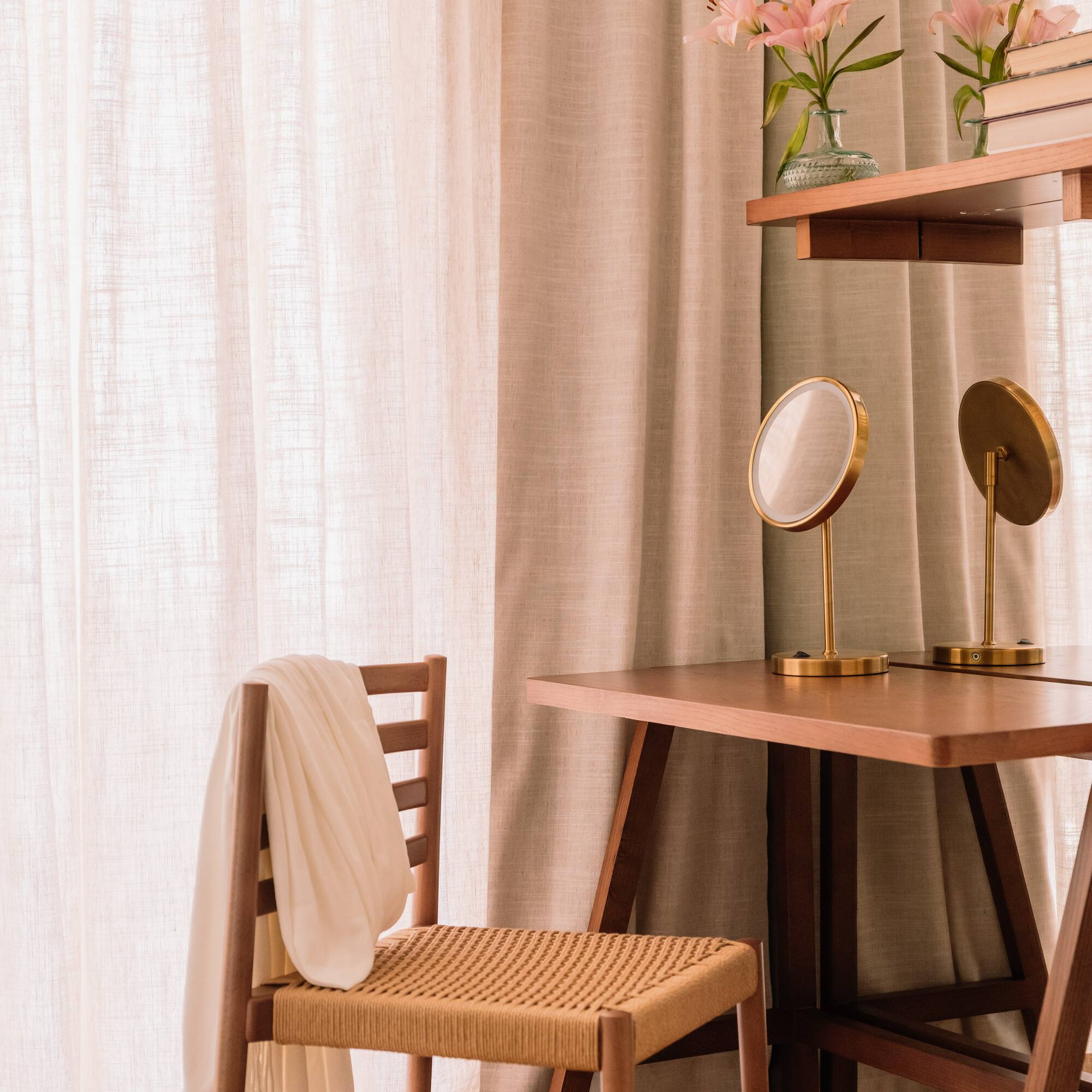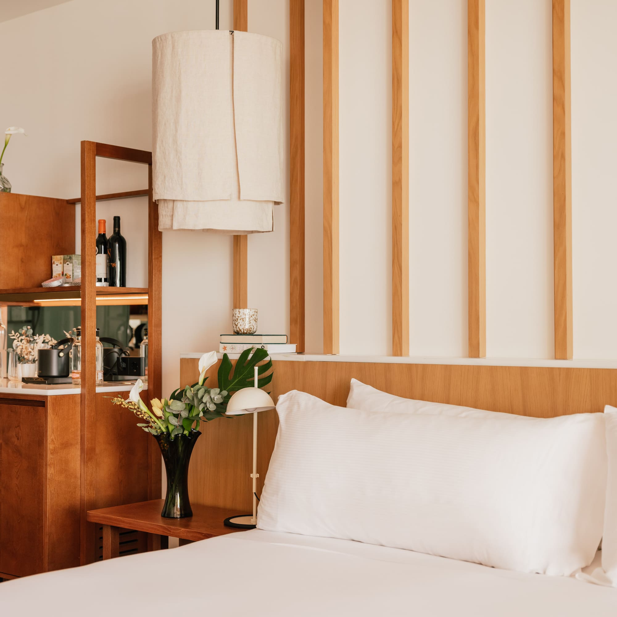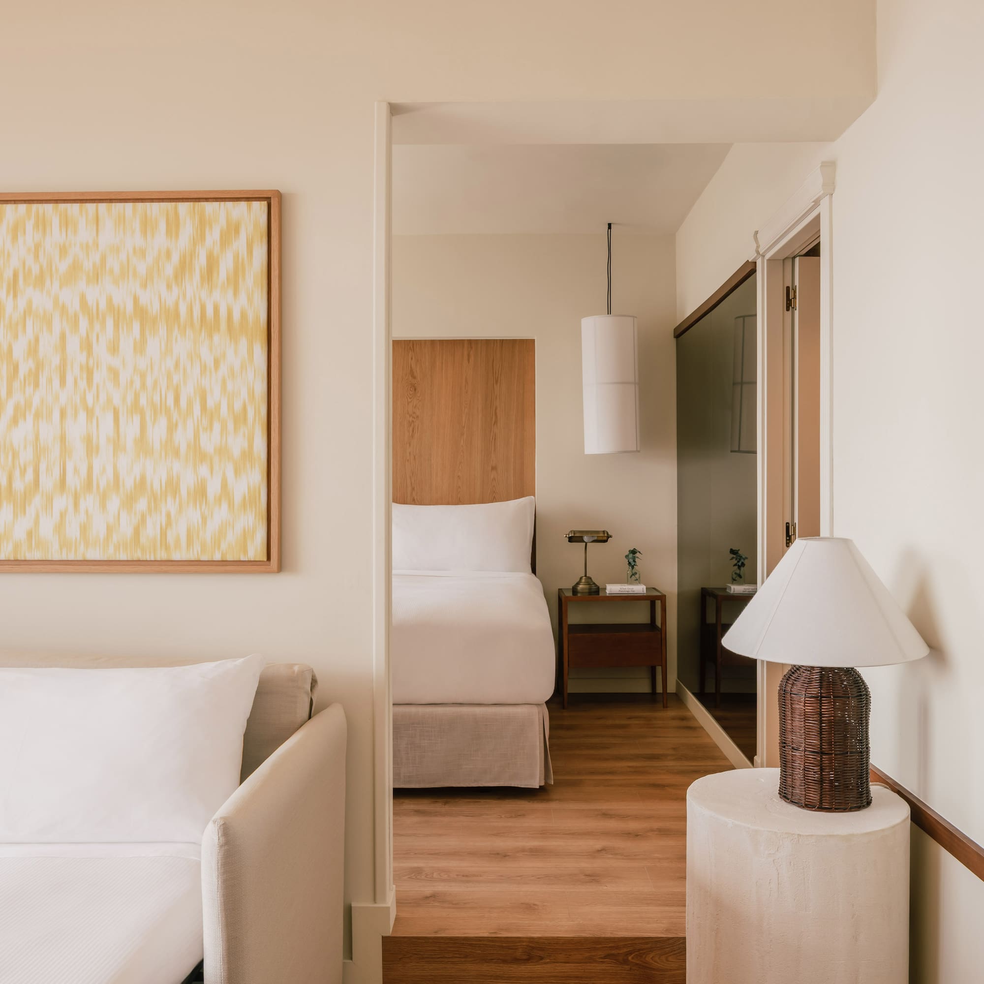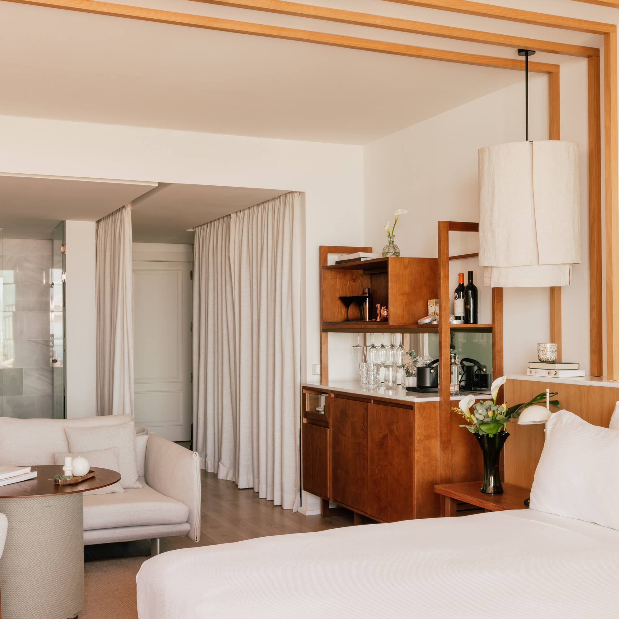 Una suite de ensueño distribuida en un dormitorio y un salón independiente con sofá cama. Pura funcionalidad y elegancia combinadas con unas vistas panorámicas espectaculares a la bahía de Palma y a la Seu.