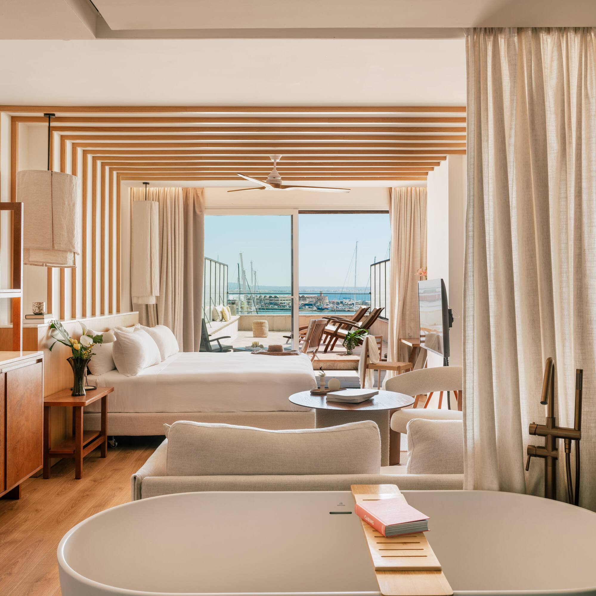 Una preciosa habitación con fantásticas vistas a la Marina de Palma desde su gran terraza privada. Sienta la verdadera desconexión y la experiencia más exclusiva en una de nuestras mejores habitaciones, perfecta para disfrutar con la familia.