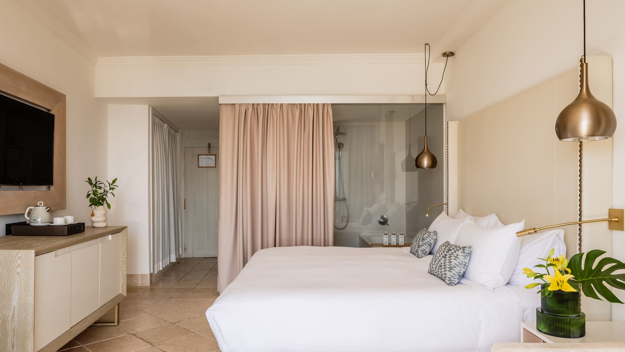 Ubicada en uno de los rincones más privilegiados del hotel, esta habitación ofrece envidiables vistas a Marbella. Dispone de dos espacios diferenciados, un dormitorio luminoso y un salón independiente, además de un baño de diseño con ducha.