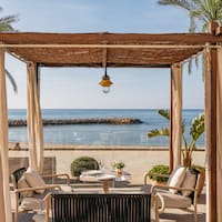 Descubre el bar del hotel, donde te esperan las ostras y cangrejo real más exquisitos y una refinada selección de quesos y champán. Cuidadosamente diseñado para seducir los sentidos, rinde homenaje a los productos locales más auténticos en un entorno mediterráneo sofisticado. Disfruta de ostras frescas perfectamente acompañadas de una copa fría del mejor vermut con increíbles vistas al mar como telón de fondo.