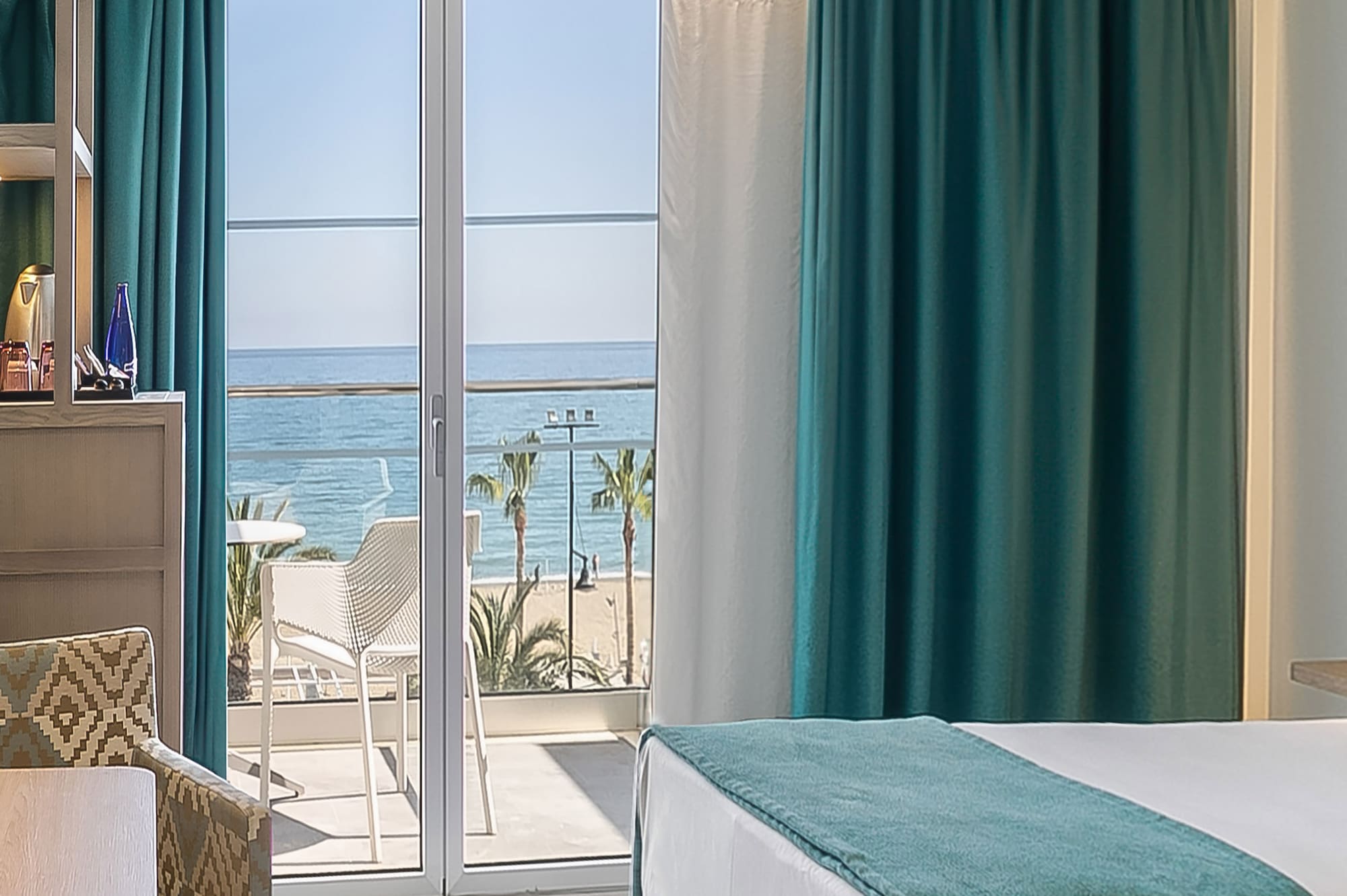 La playa y el mar son el alma de esta habitación, ubicada en la última planta. Desde su gran terraza de 25 m² podréis disfrutar de una vista panorámica de la Costa del Sol y su equipamiento hará de vuestra estancia un momento único.