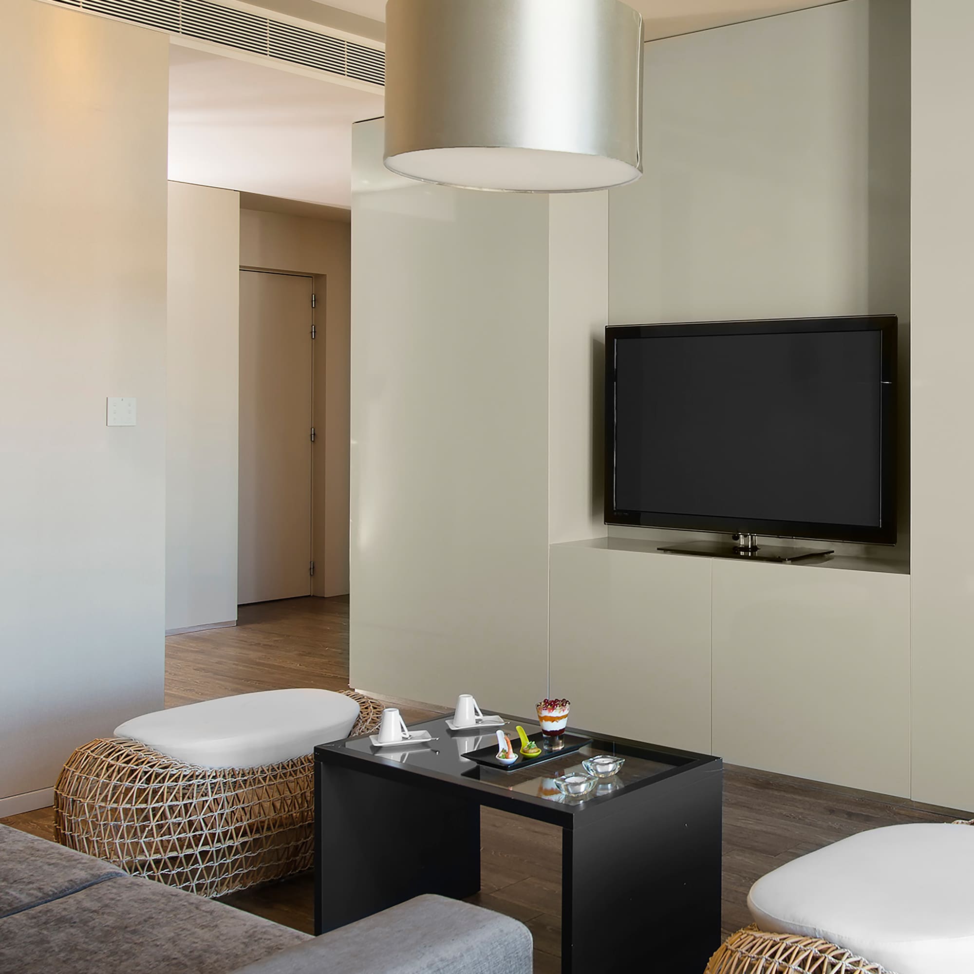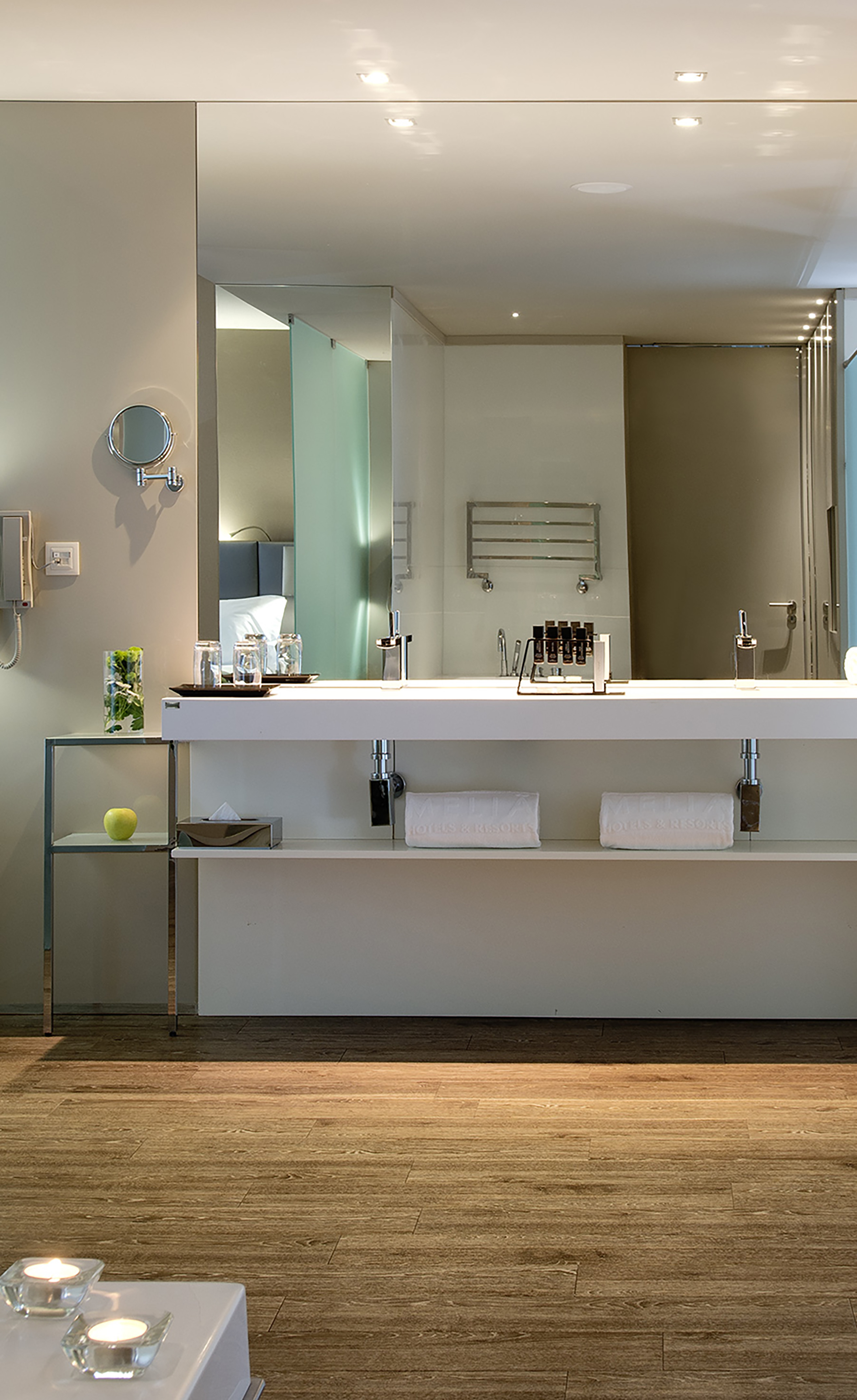 Descubre esta espectacular suite con salón independiente, un amplio dormitorio con cama doble y un cuarto de baño abierto con bañera y ducha. Distráete viendo la TV, trabajando en el escritorio o admirando las vistas al jardín que te brinda la estancia.