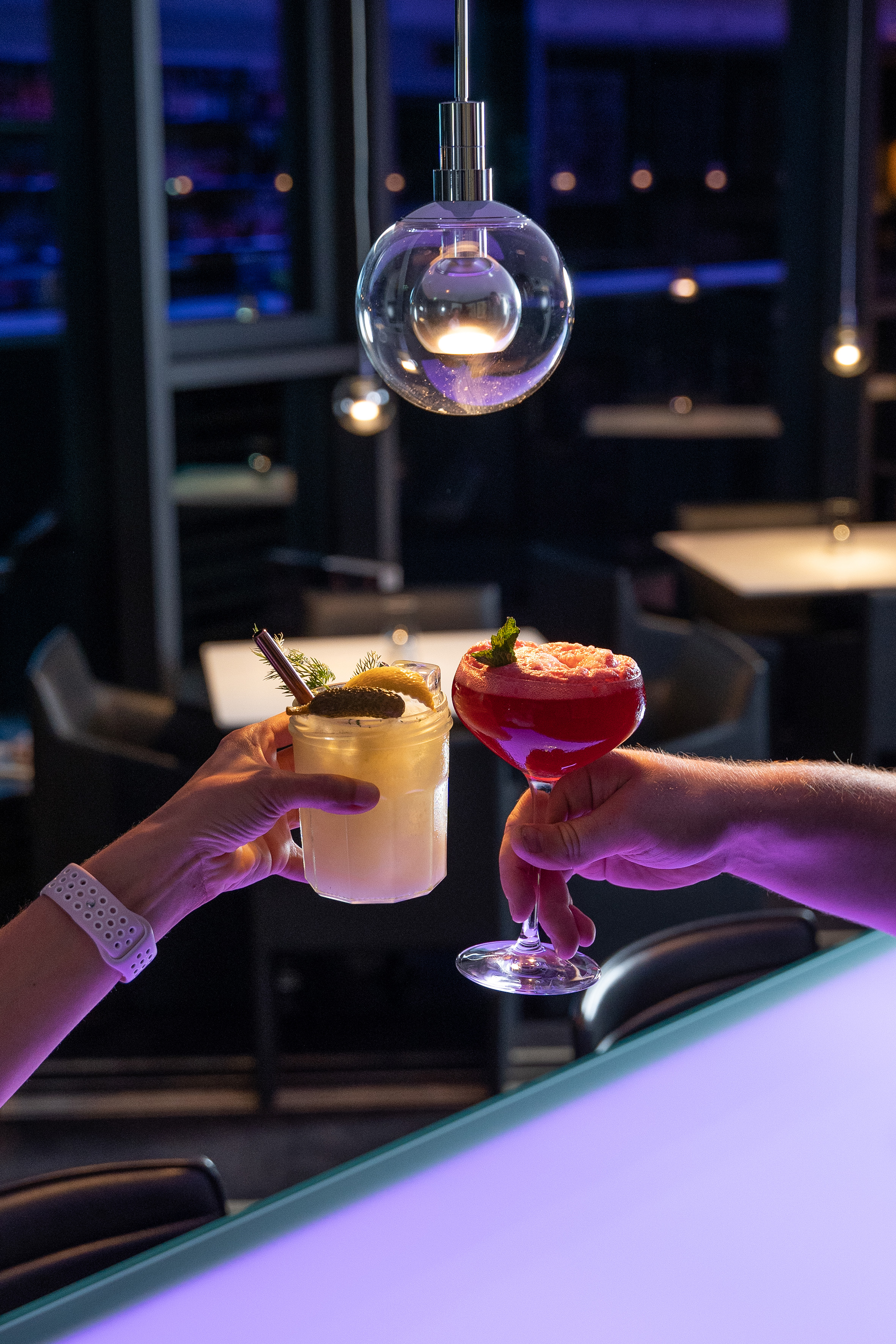 Un espace moderne et lumineux où le bar devient le centre de l'expérience. Lignes épurées, matériaux contemporains et une sélection de spiritueux de qualité. Ici, chaque cocktail est préparé sous vos yeux, chaque conversation coule naturellement, et chaque instant est accompagné de l'énergie détendue d'un bar perché au-dessus de la ville.