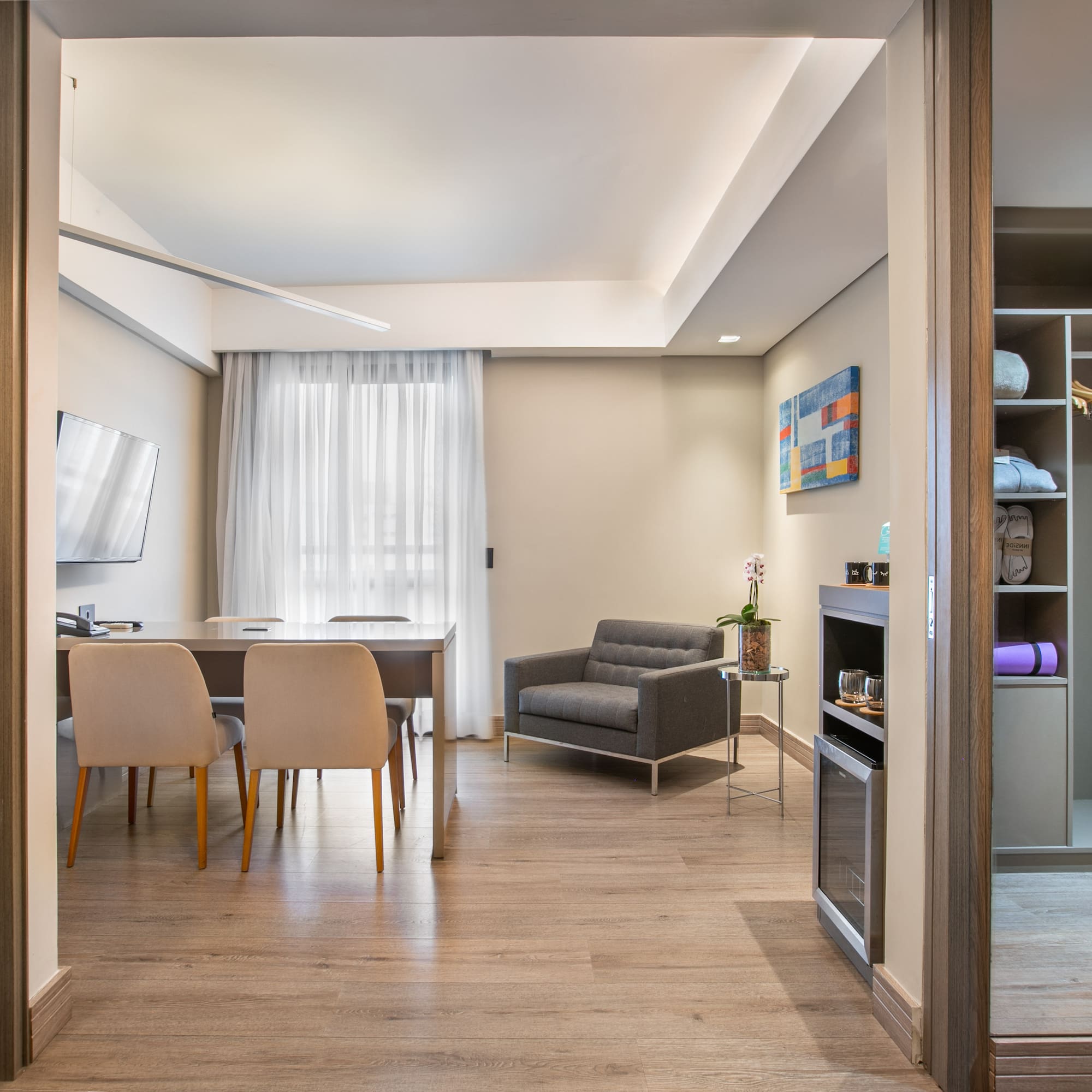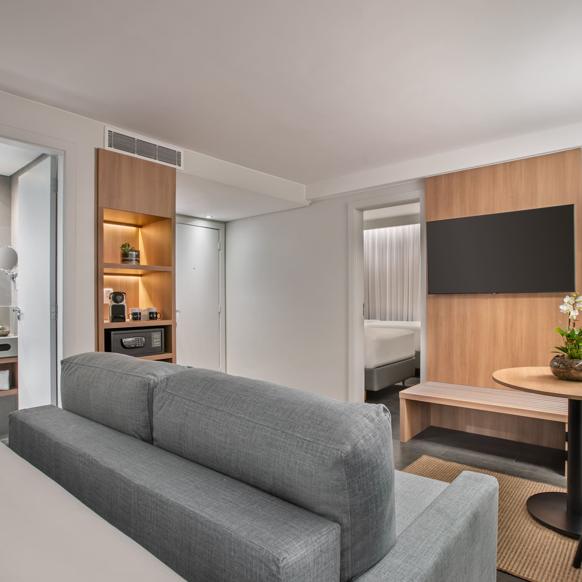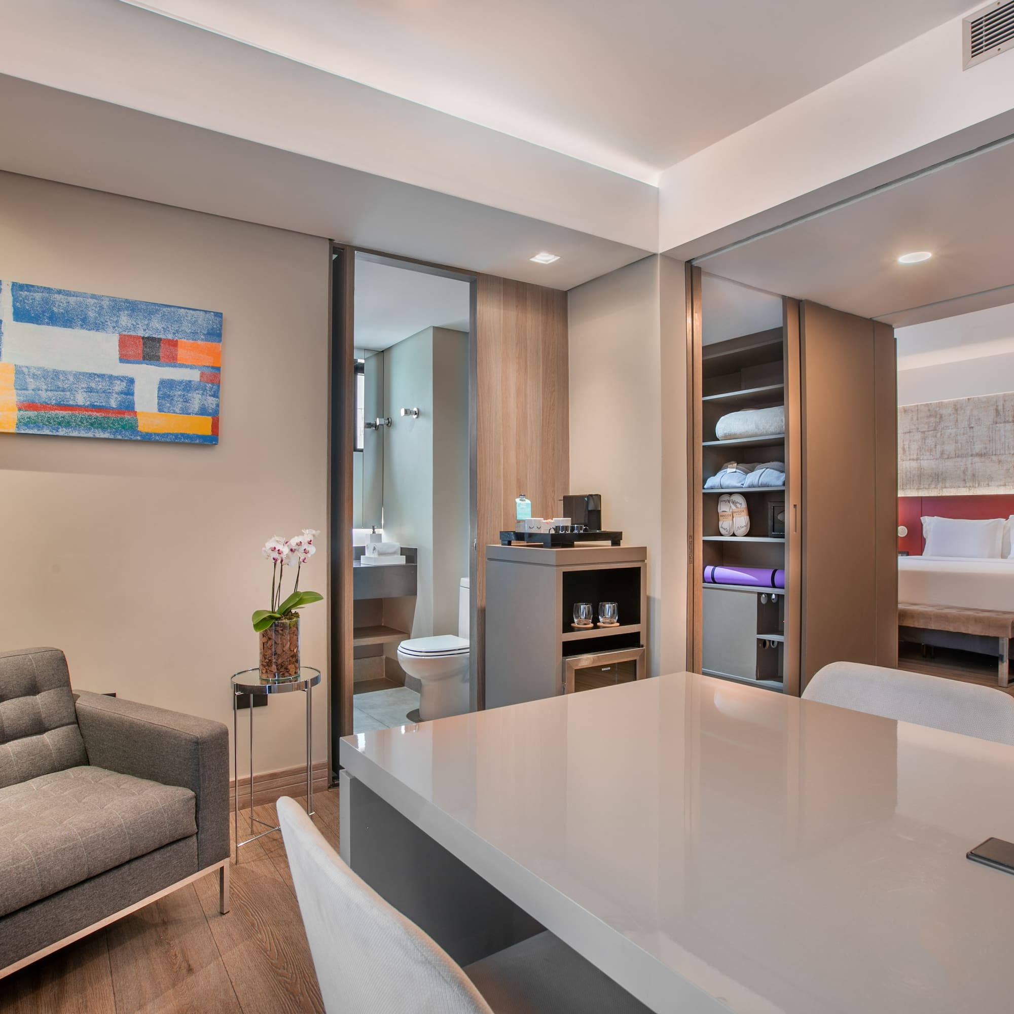 L’équilibre parfait entre exclusivité, confort et espace. Une suite ultra-moderne avec deux espaces indépendants séparés par des portes coulissantes, conçue pour rendre votre séjour à São Paulo inoubliable. Quelle chambre!