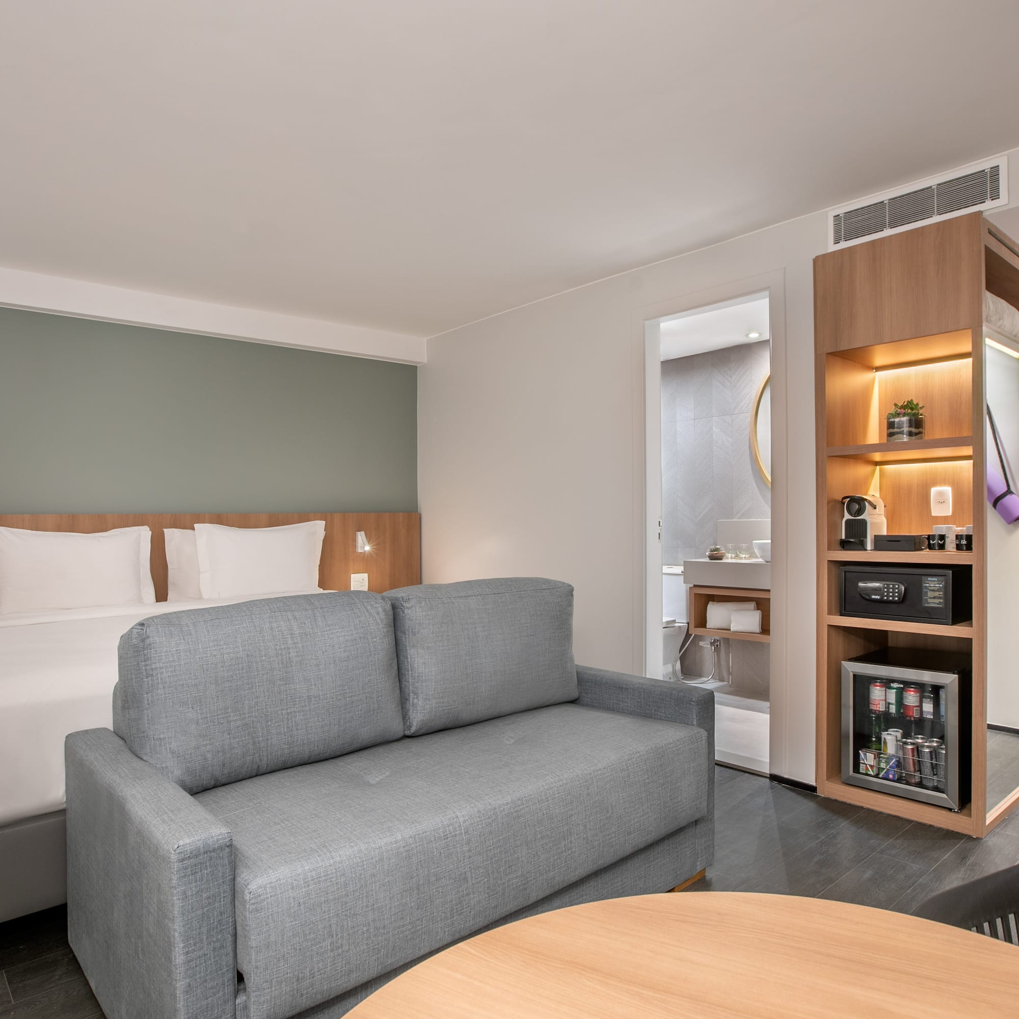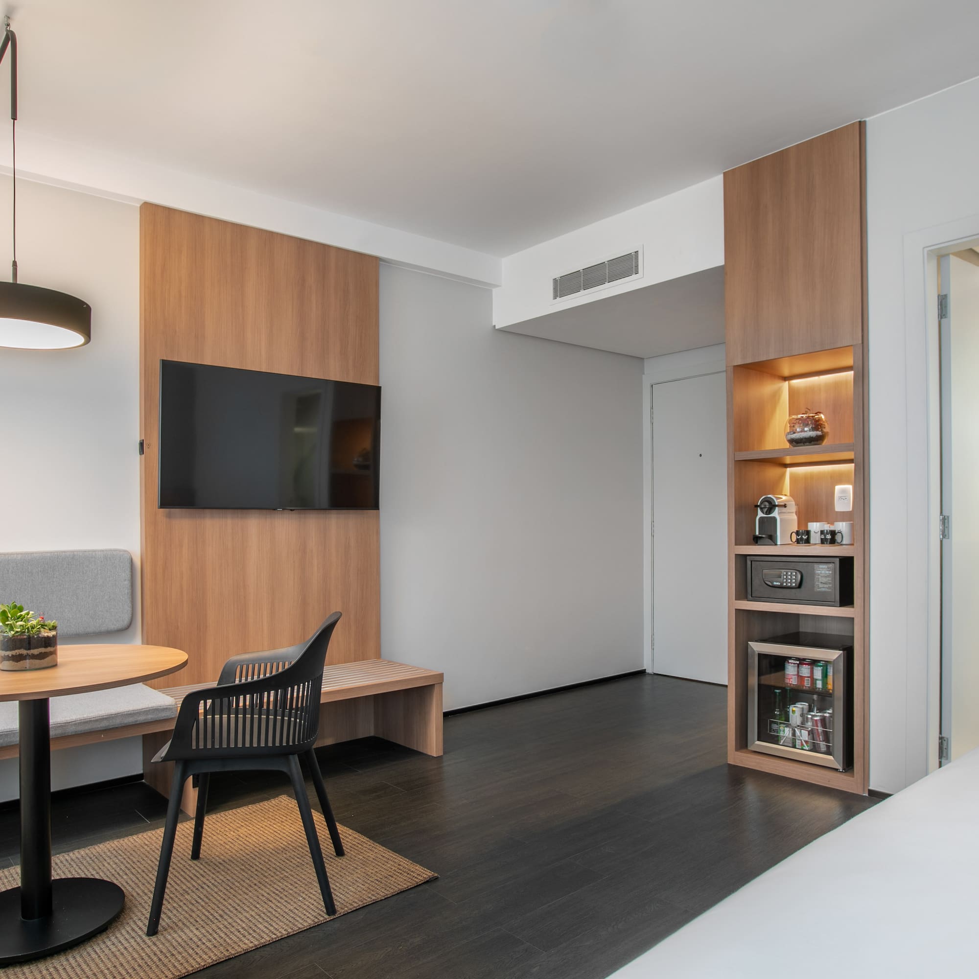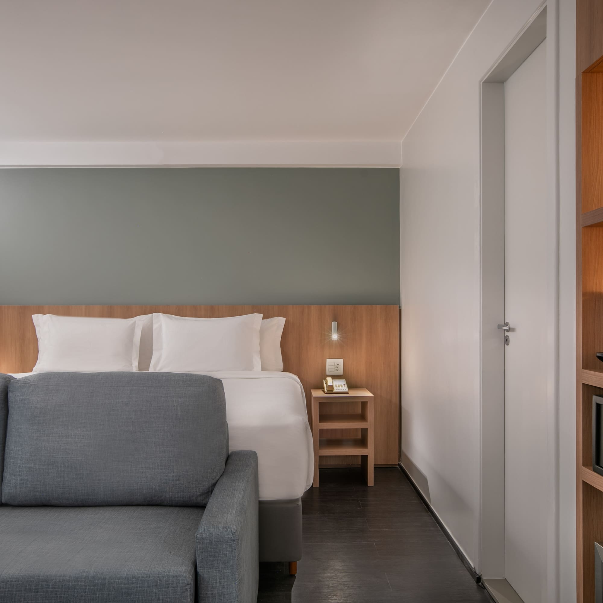 L’équilibre parfait entre exclusivité, confort et espace. Une suite ultra-moderne avec deux espaces indépendants séparés par des portes coulissantes, conçue pour rendre votre séjour à São Paulo inoubliable. Quelle chambre!