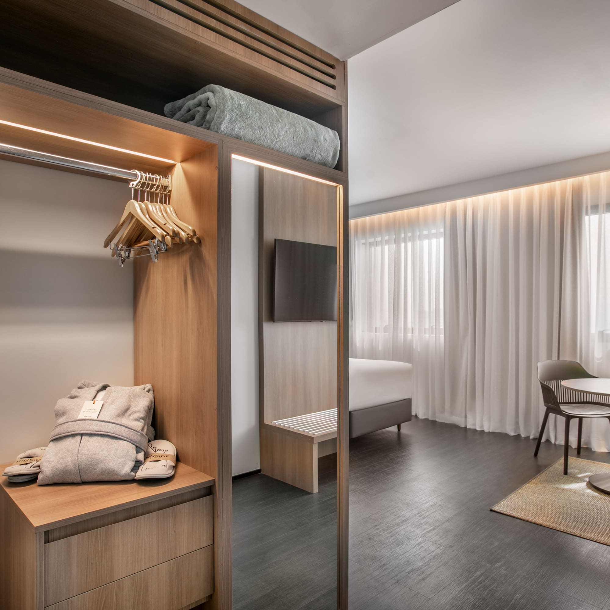 Avec des vues captivantes, vous disposerez d'une Smart TV, d'une machine à café Nespresso pour bien commencer la journée, d'un minibar pour les petites envies, et d'une salle de bain tellement complète que vous n'aurez pas envie de sortir. Tout ce dont vous avez besoin pour vous sentir chez vous... mais en mieux !