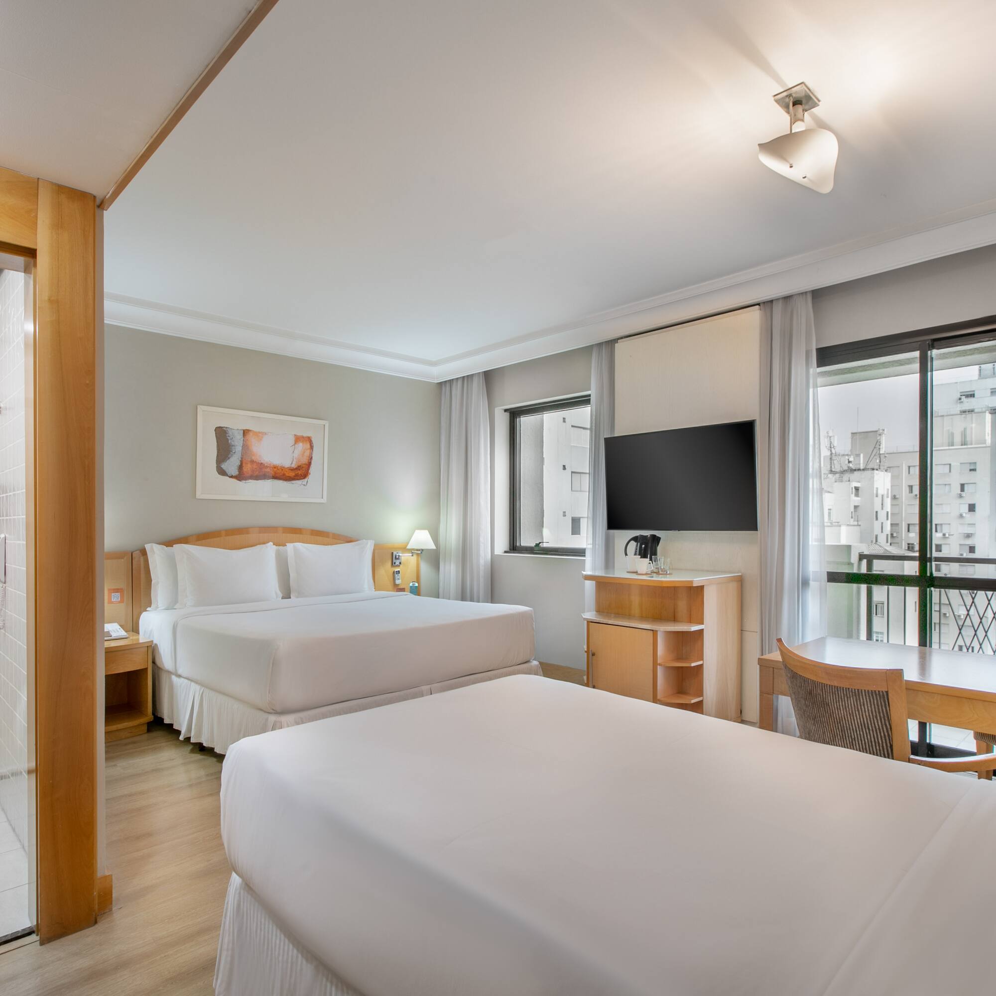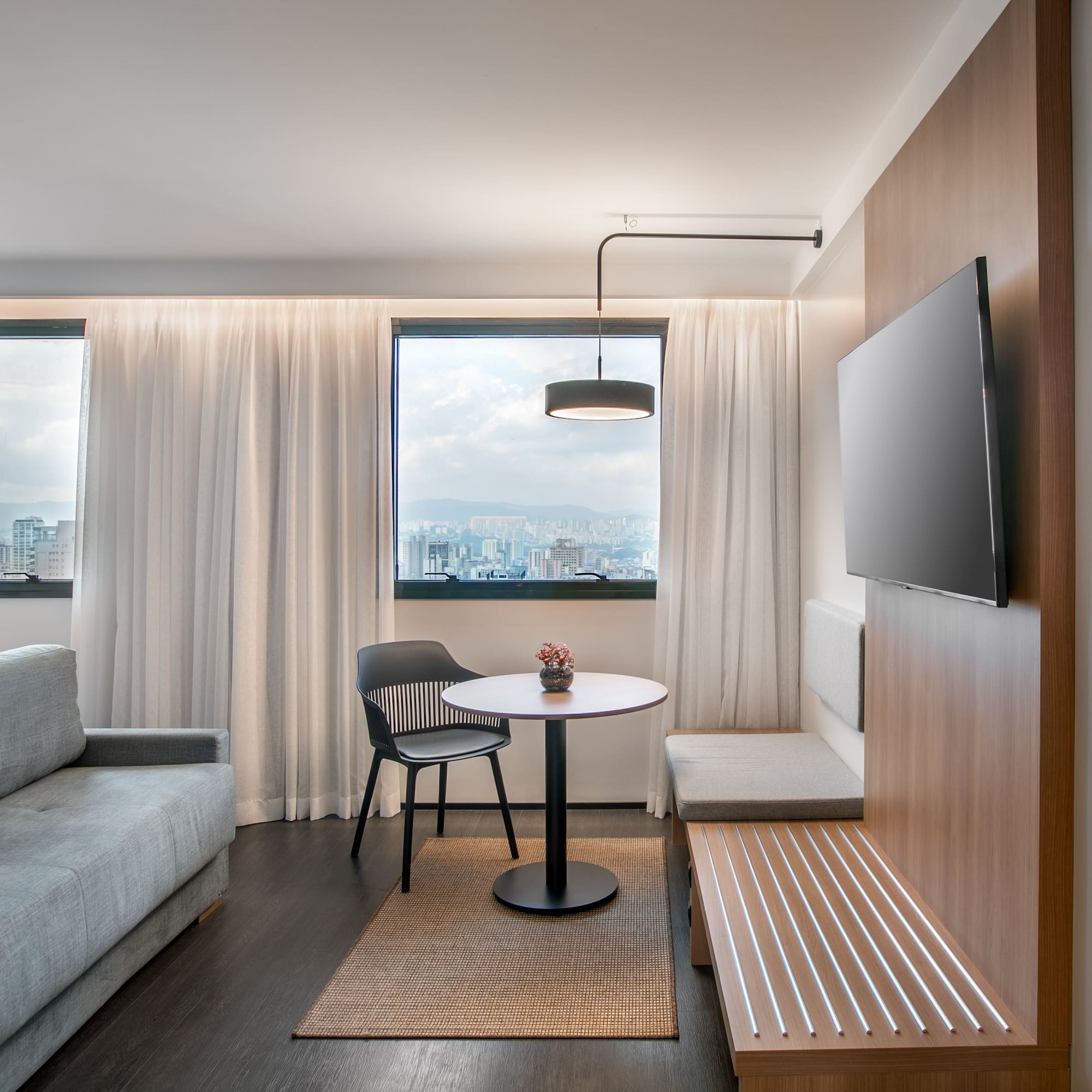 Vous voulez vous réveiller avec Higienópolis à vos pieds ? Ici, vous profiterez d'une vue séduisante depuis le balcon privé, le lit, le fauteuil ou le bureau. En plus, vous disposerez d’un minibar, d’un peignoir, de chaussons et d’une salle de bain complète pour une expérience cocooning.