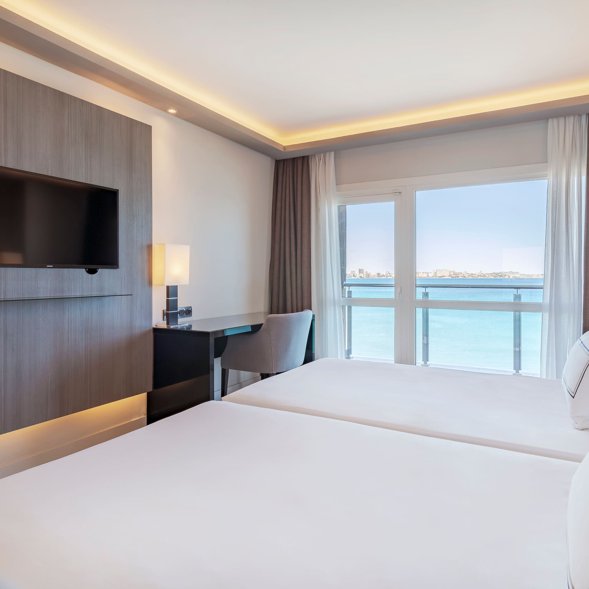Découvrez le confort le plus exclusif dans cette suite située au dernier étage de l'hôtel et offrant une vue imprenable sur le port de plaisance d'Alicante. Une chambre fantastique et spacieuse avec un salon avec canapé-lit. Chambre pour adultes seulement (à partir de 18 ans).
