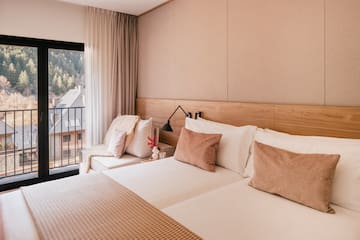Avec une chambre et un salon séparé, les montagnes sont votre complice. Chaque instant vous donne le sentiment que le temps s'arrête. Une suite au pied des pistes avec une vue panoramique unique sur la vallée d'Arán.