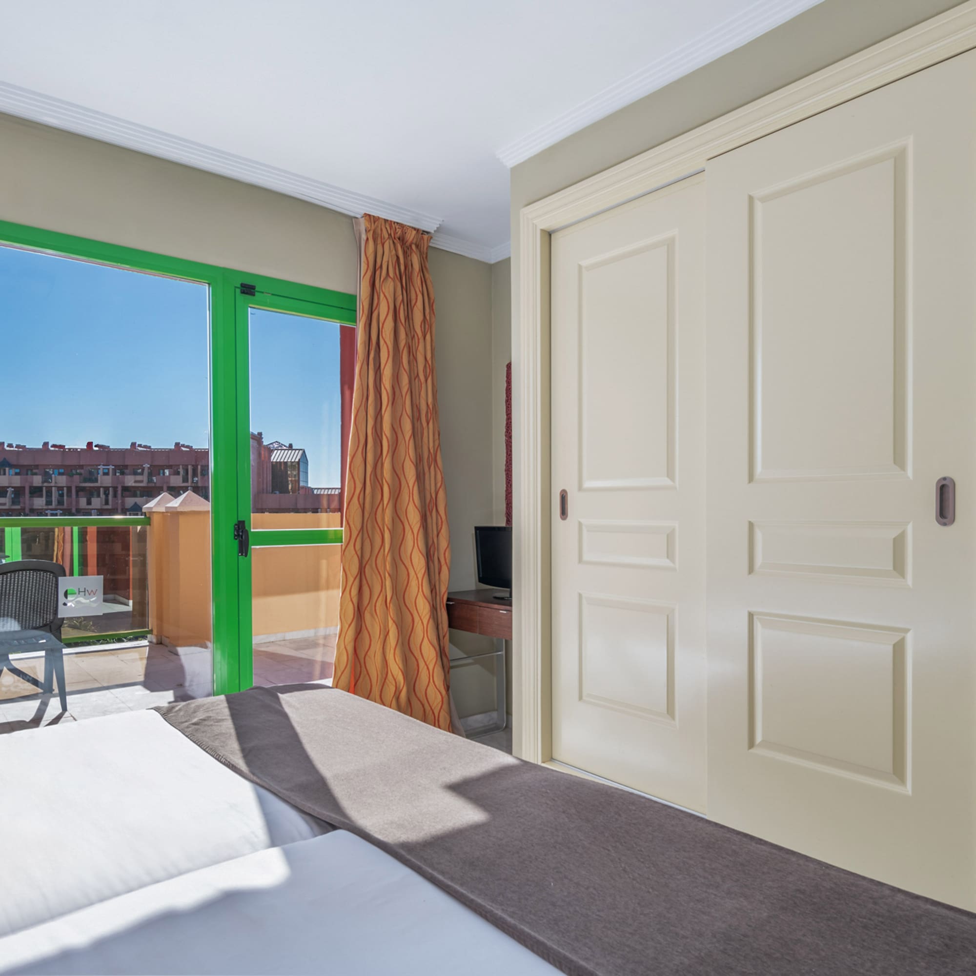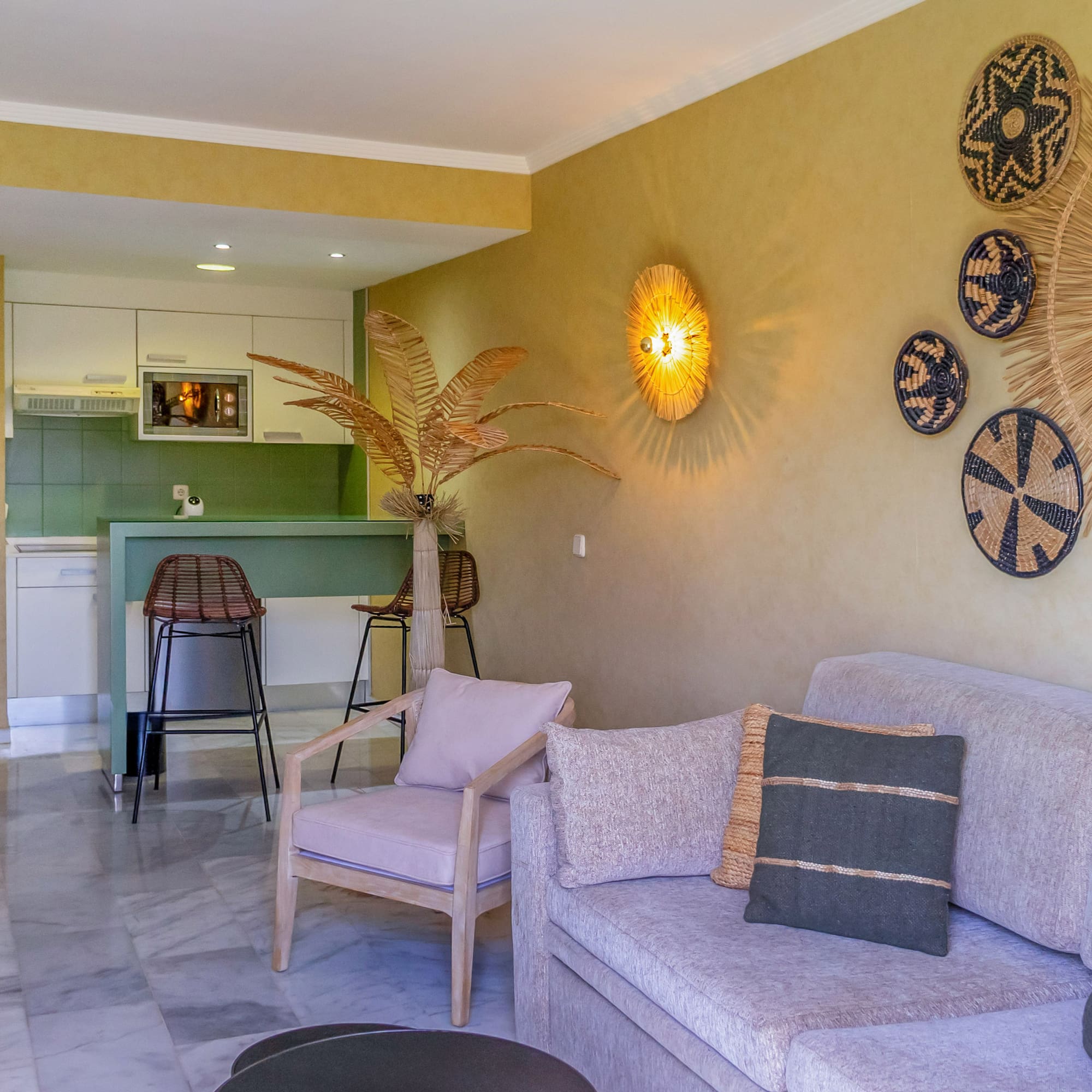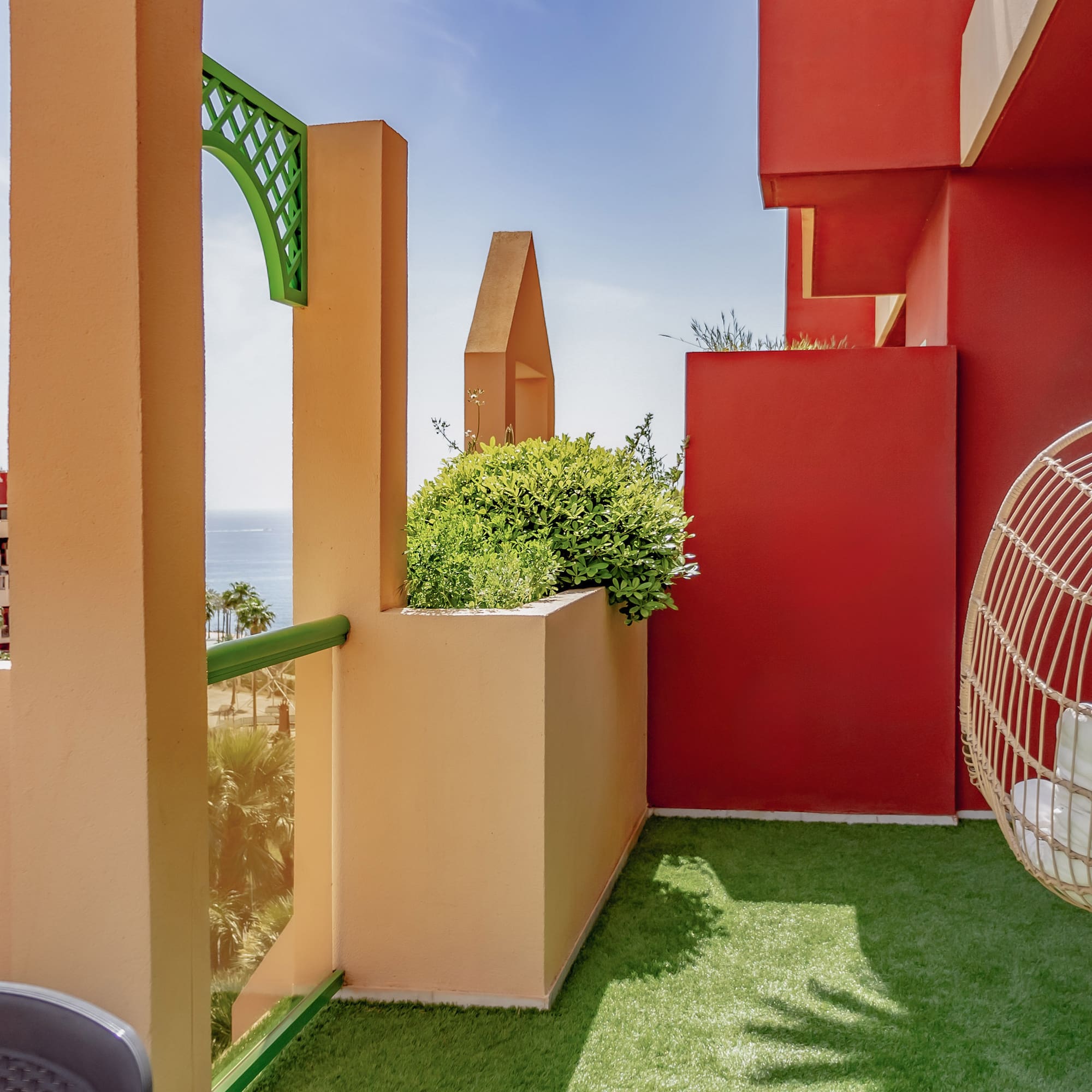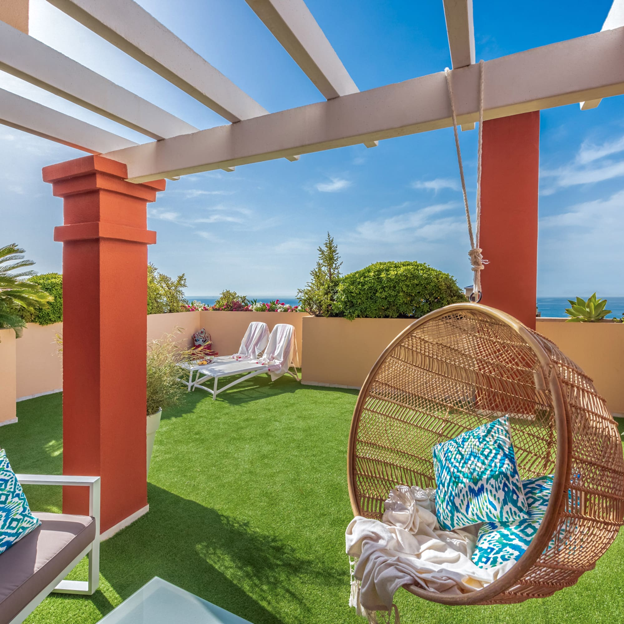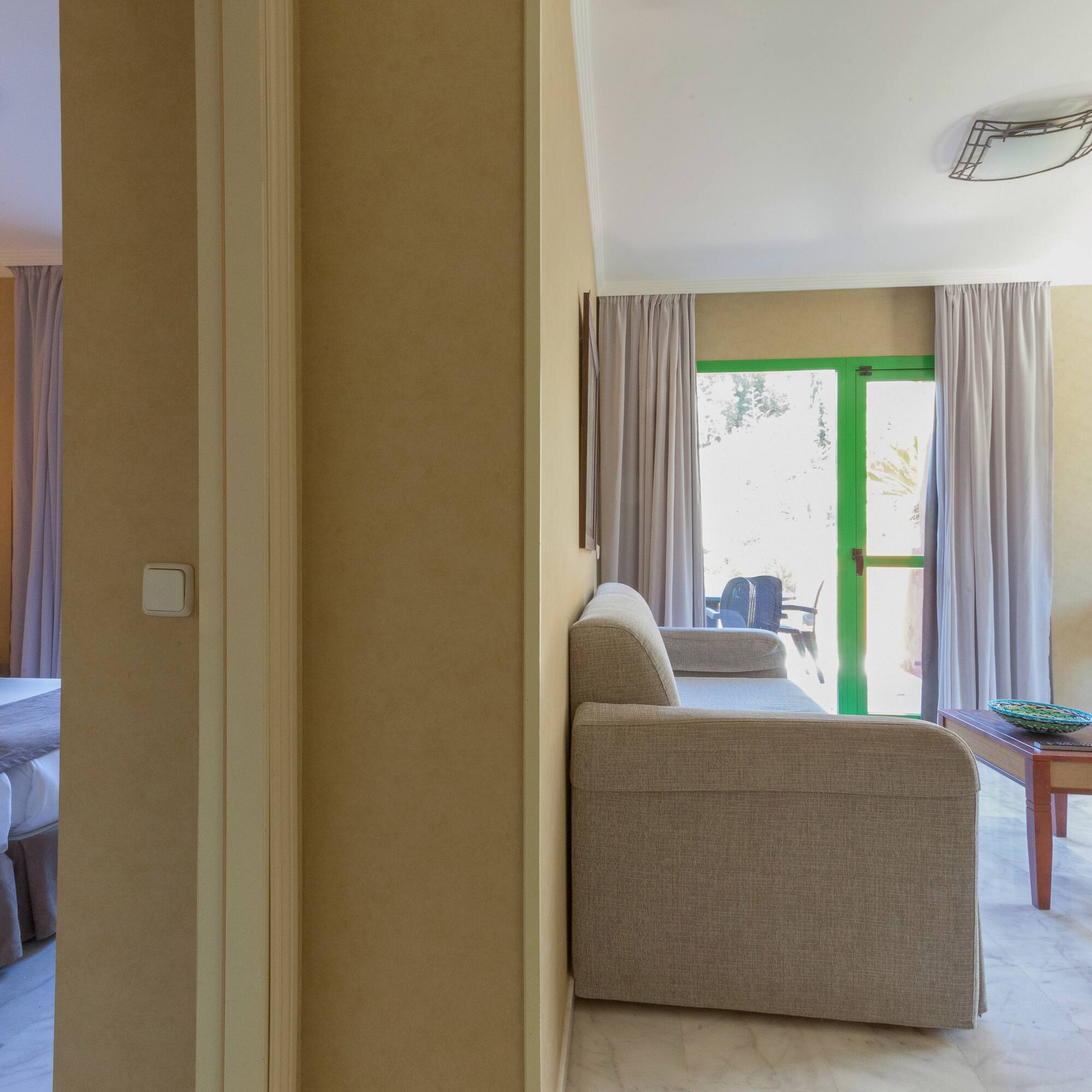 Une suite lumineuse et moderne avec une grande terrasse et vue sur la mer. Elle comprend une chambre séparée, un salon avec un canapé-lit et une salle de bains complète. L'endroit idéal pour se détendre et se déconnecter avec la famille.