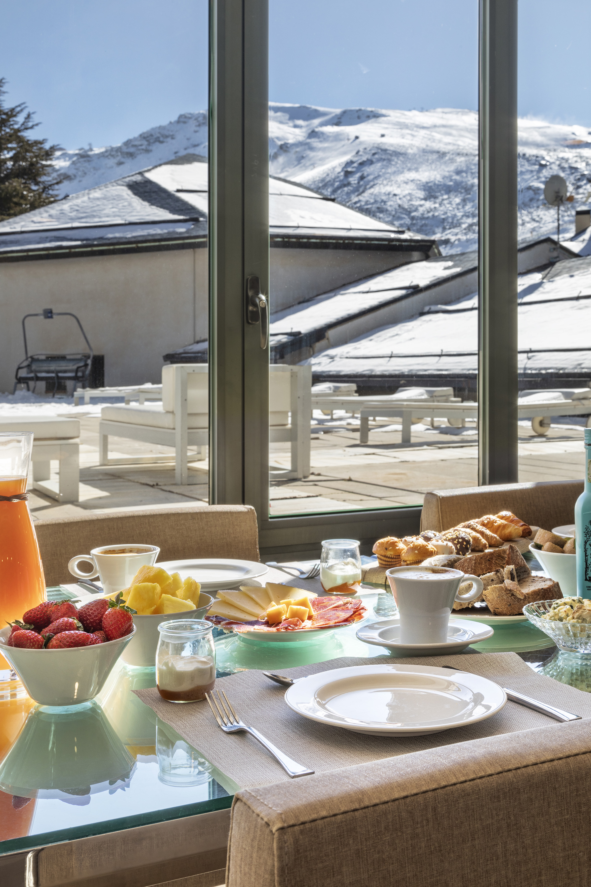 Découvrez notre restaurant confortable et chaleureux avec cheminée à Meliá Sol y Nieve. L'endroit idéal pour partager un agréable dîner ou déjeuner en dégustant notre gastronomie espagnole avec votre famille et vos amis.
