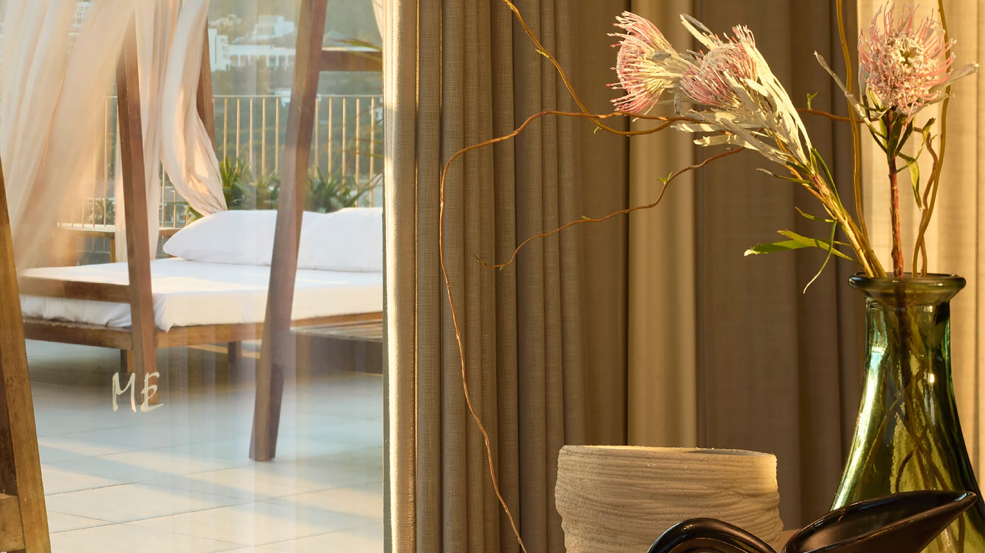 Un sanctuaire ouvert au calme des jardins du ME Sitges Terramar. Minimalisme et technologie coexistent dans un espace où les tons doux enveloppent chaque recoin pour vous offrir un repos ininterrompu.