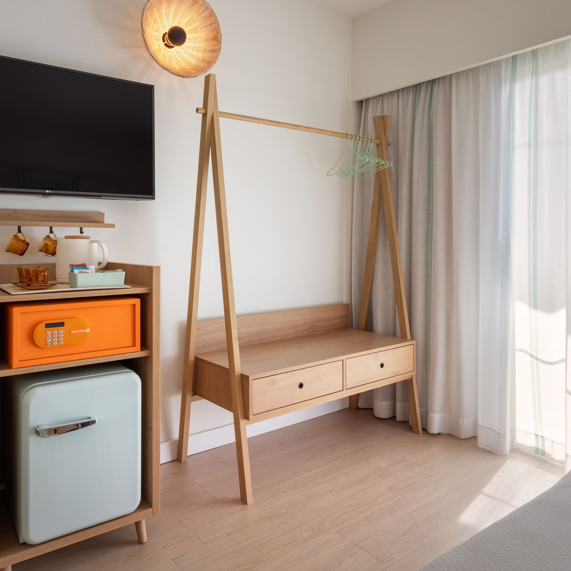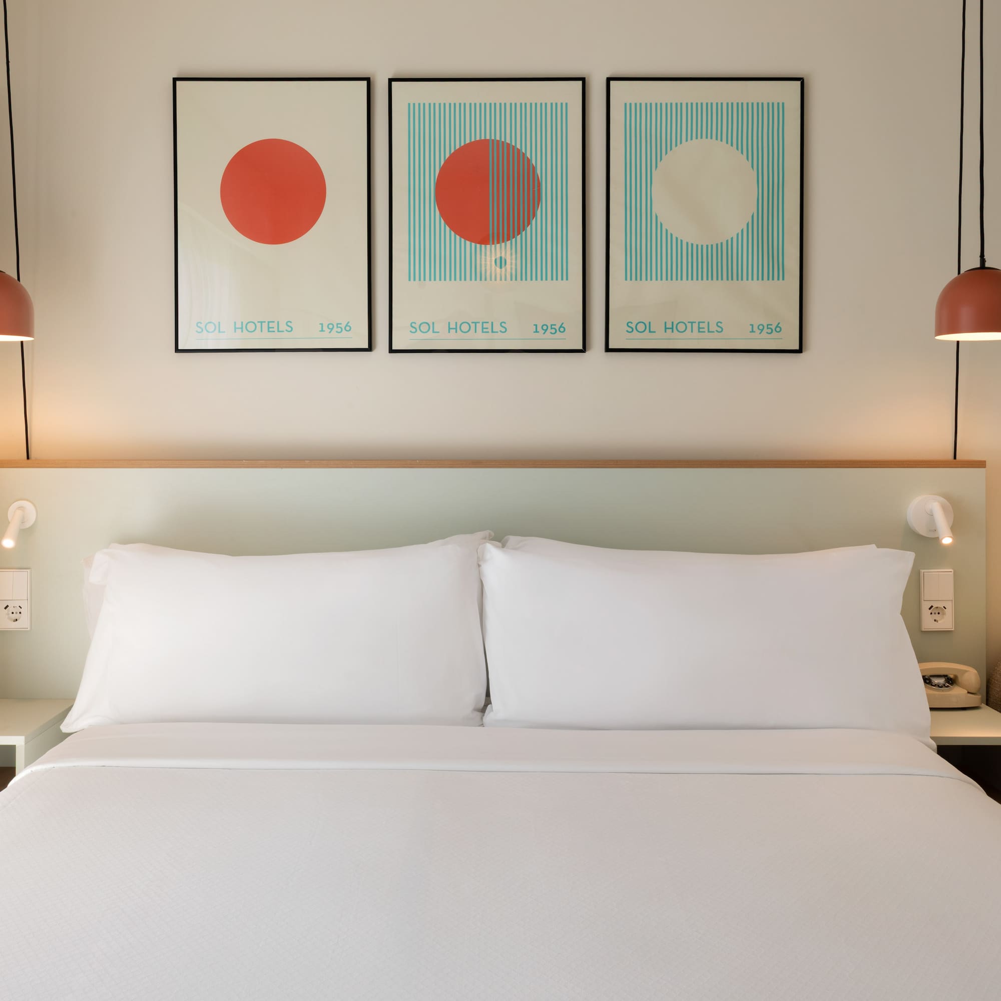Commencez la journée avec des vues sur la mer dans cette chambre lumineuse et confortable. Dotées d'un mobilier fonctionnel et décorées dans des couleurs chaudes, elles offrent tout ce dont vous avez besoin pour une expérience complète à SOL Príncipe.