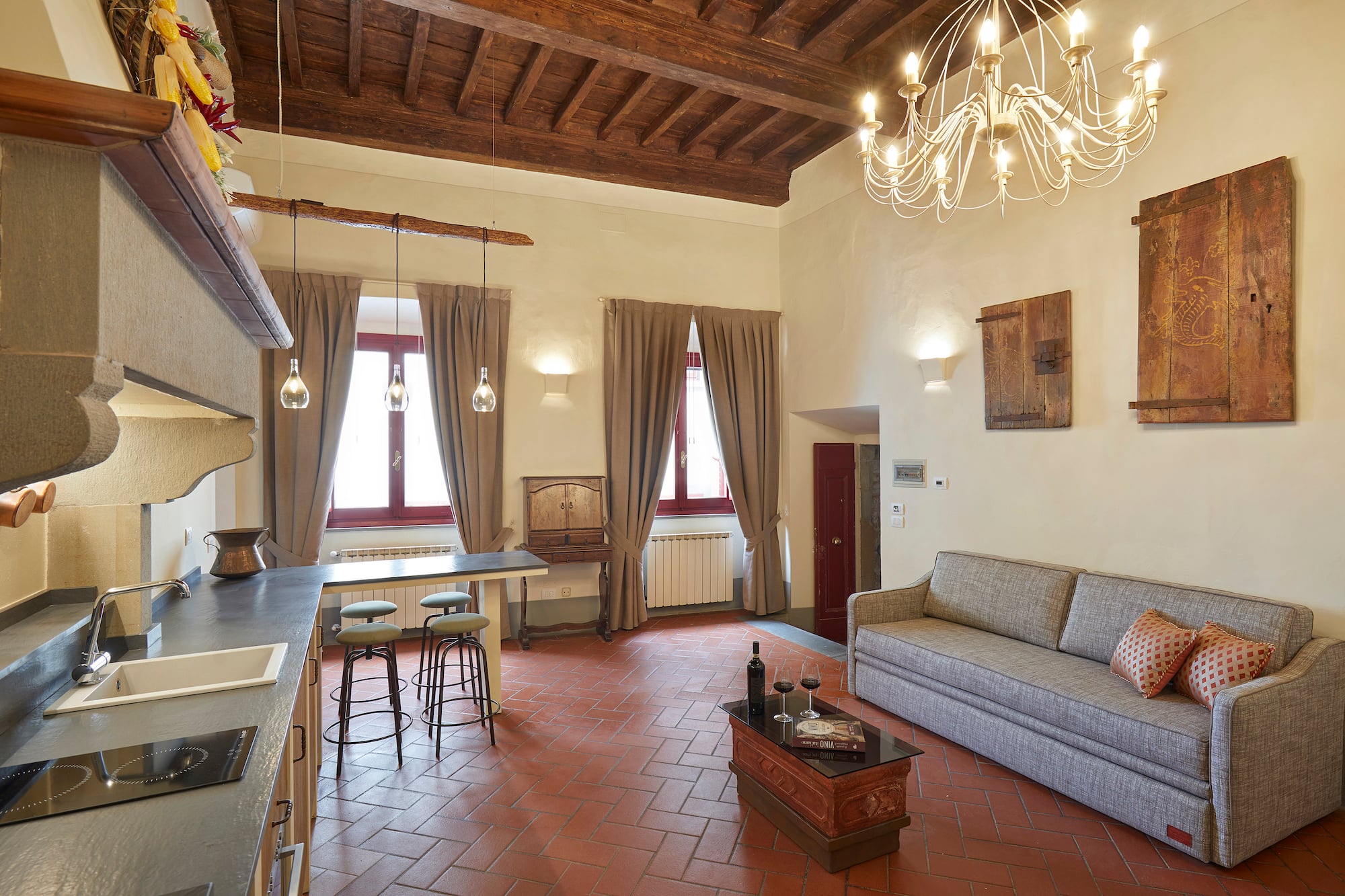 Profitez de vacances inoubliables en groupe dans cet appartement indépendant, situé dans le village médiéval fortifié d'Artimino, à 400 mètres de l'hôtel. Il comprend deux chambres, un salon séparé avec un canapé-lit et une cuisine entièrement équipée. Une aventure italienne inoubliable vous attend !