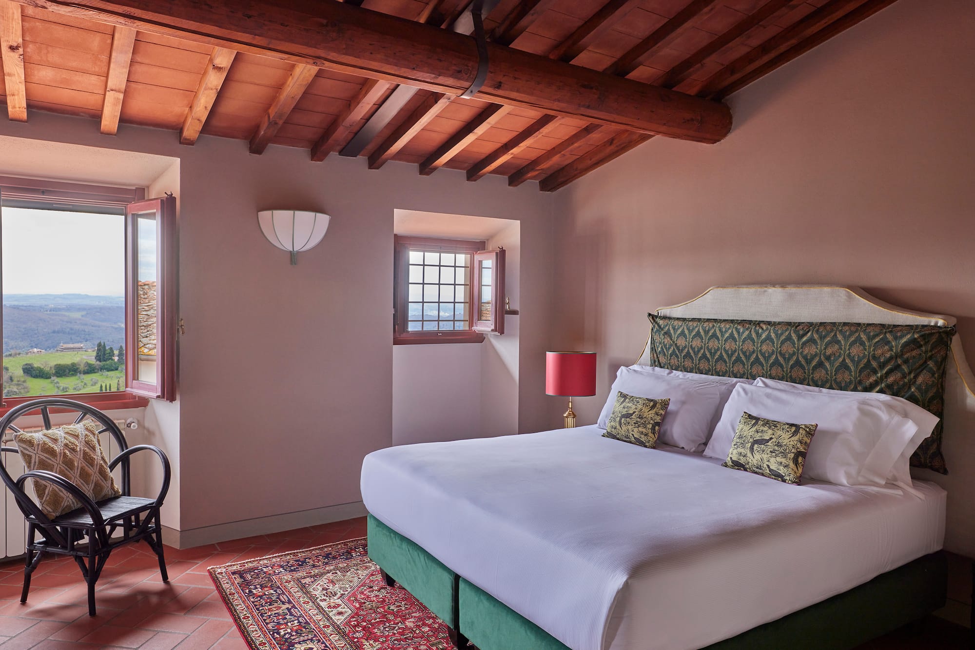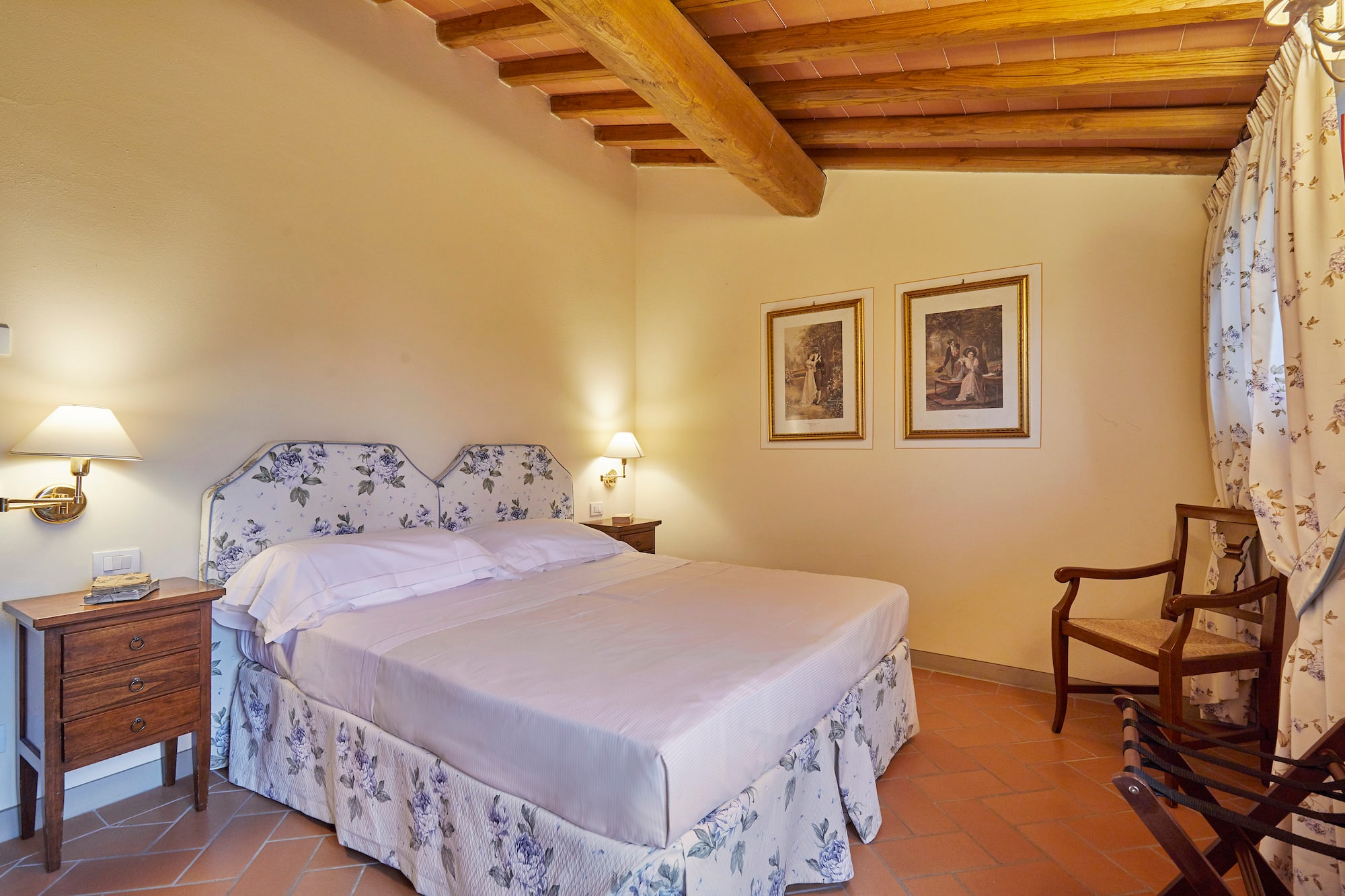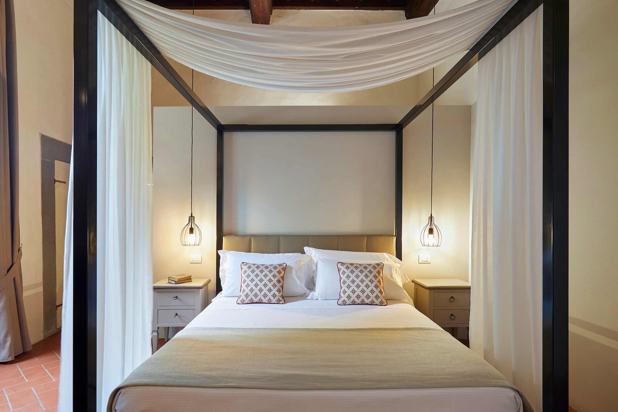 Située dans le magnifique édifice Renaissance de l’hôtel Paggeria Medicea, au premier étage à côté de la villa, cette chambre est idéale pour les couples. La salle de bains entièrement équipée dispose d’une douche et/ou d’une magnifique baignoire à la française. Votre propre havre de paix italien.