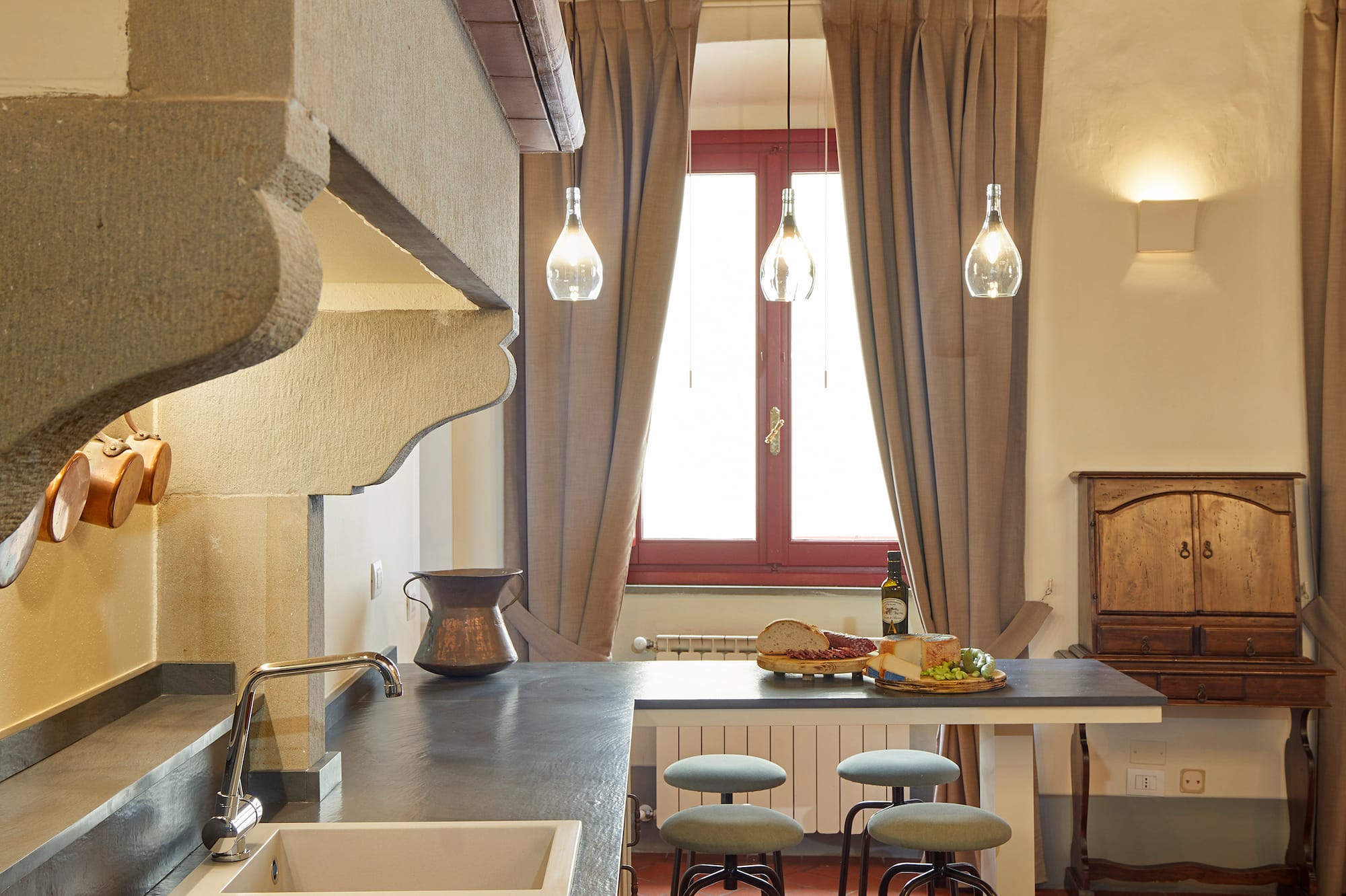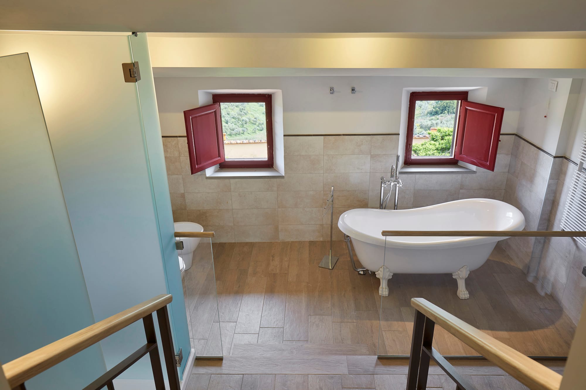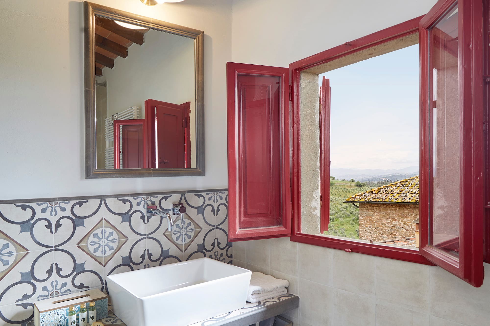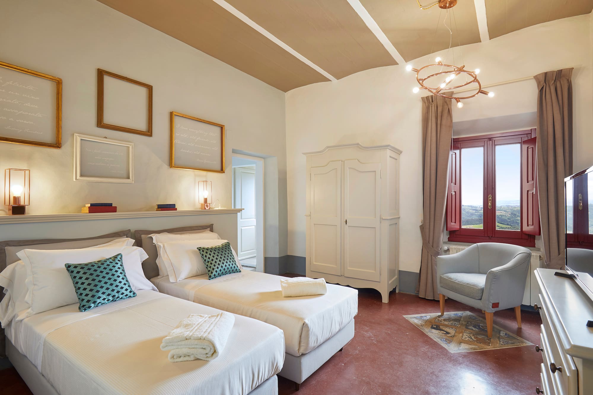 Située dans le magnifique édifice Renaissance de l’hôtel Paggeria Medicea, au premier étage à côté de la villa, cette chambre est idéale pour les couples. La salle de bains entièrement équipée dispose d’une douche et/ou d’une magnifique baignoire à la française. Votre propre havre de paix italien.