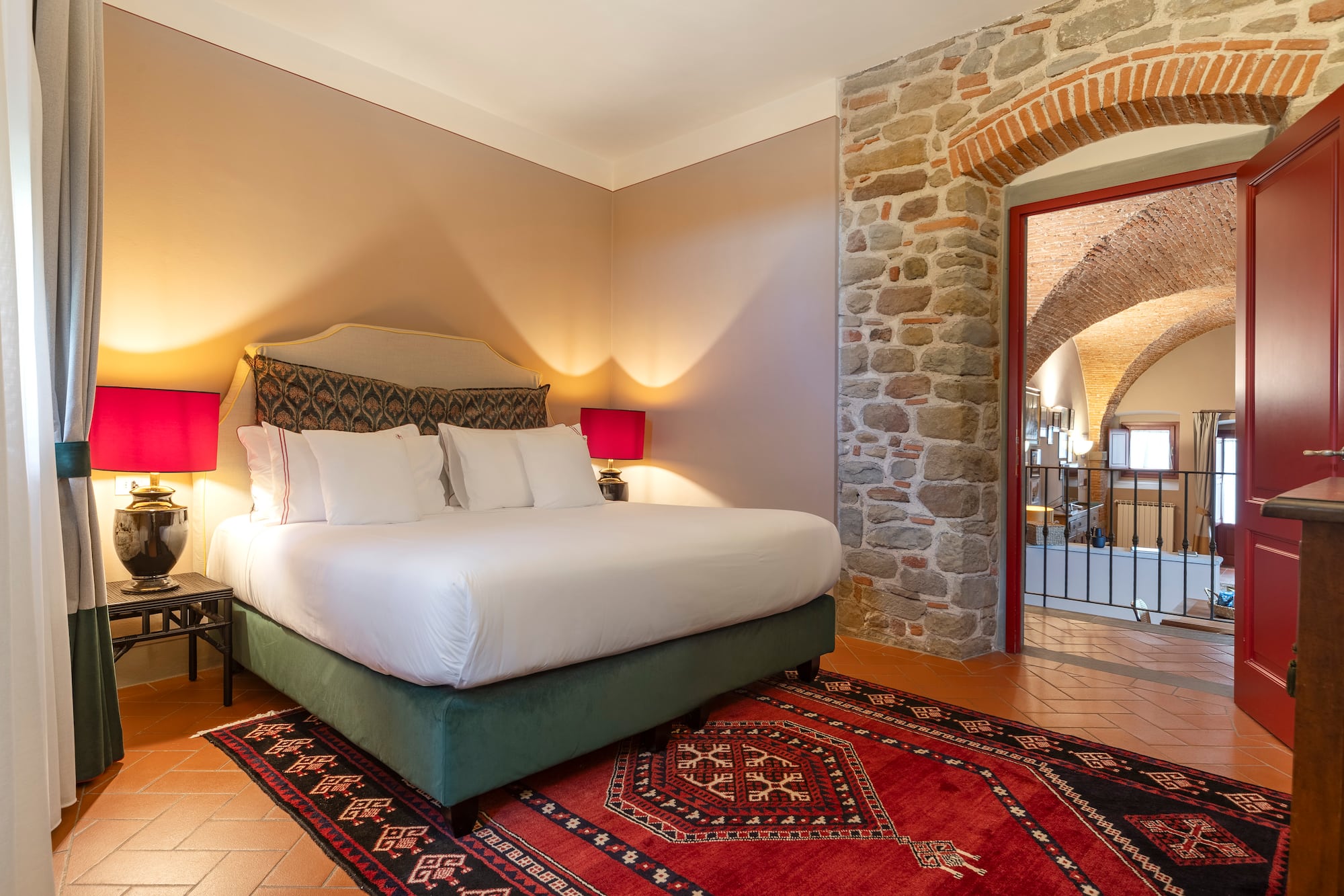 Profitez de chaque instant d’une véritable expérience toscane dans cette chambre du Paggeria Medicea située à côté de la villa, au rez-de-chaussée ou au premier étage, avec une porte qui s’ouvre sur le paysage toscan. Une immersion totale en Toscane !