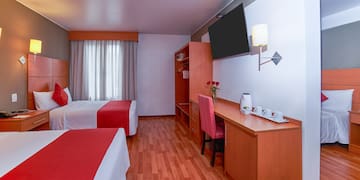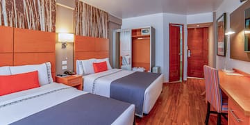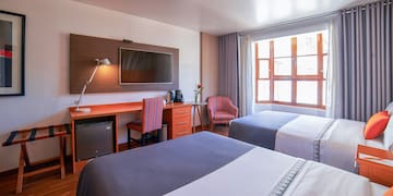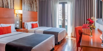 Une chambre spacieuse, confortable et fonctionnelle, avec tous les détails conçus spécialement pour les personnes à mobilité réduite. Elle comprend un lit double, la télévision par câble et une salle de bains spacieuse avec douche, articles de toilette et sèche-cheveux.