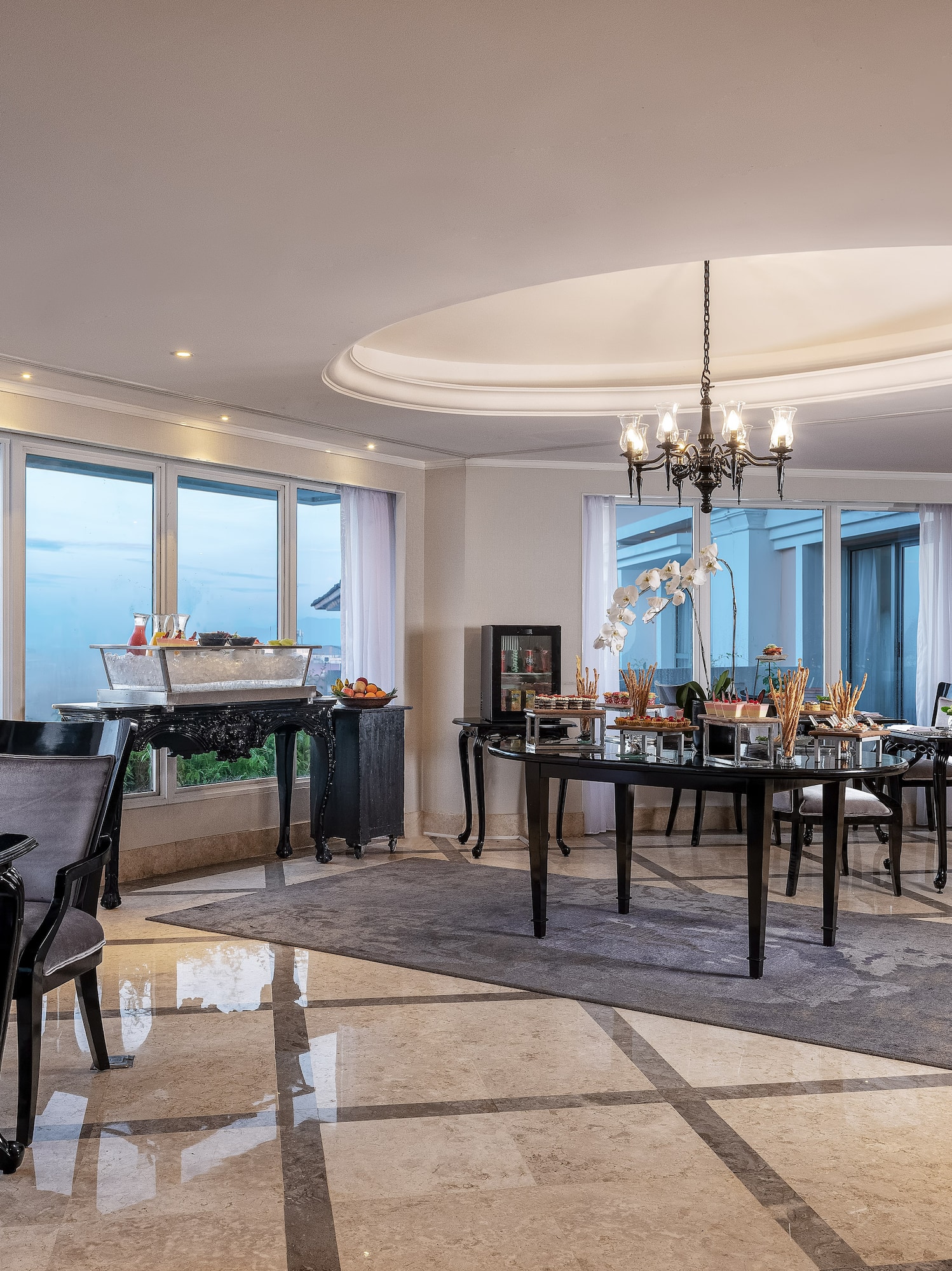 Sebuah suite megah di hotel ini, yang terdiri atas kamar tidur mewah dengan ranjang berukuran king, area kerja, dan lounge luas dengan ruang makan dan area tempat duduk. Kamar ini menyediakan dua kamar mandi mewah dengan bathtub dan shower terpisah serta ruang ganti.