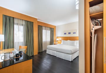Camera rinnovata con decorazioni moderne e vista sulla città cosmopolita. Soggiornate nel quartiere della moda in una camera che comprende un letto king-size, una comoda scrivania, un bagno con doccia a multigetto, una macchina Nespresso e una Smart TV da 43 pollici.