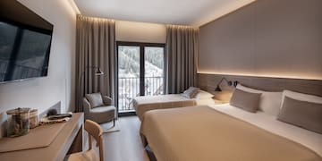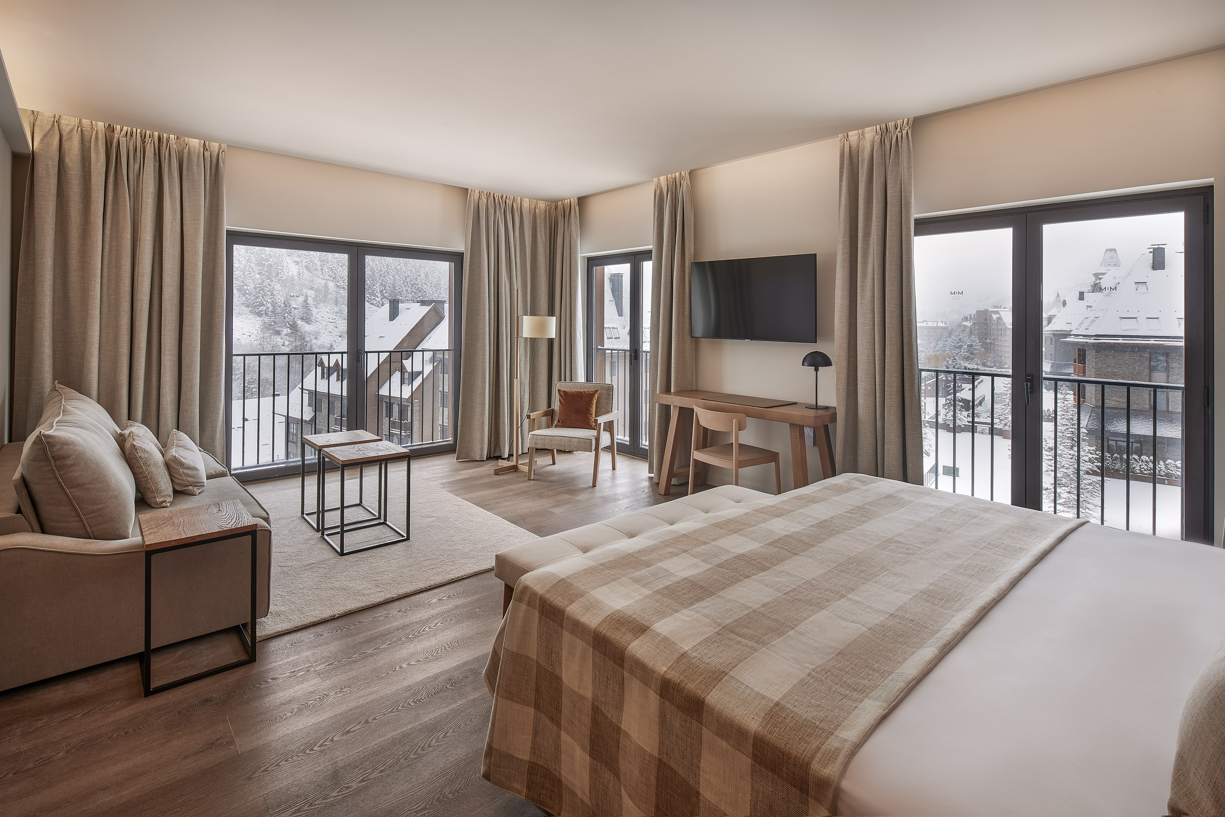 Godetevi il calore del legno e il design alpino. Una camera in montagna con una nuotata che vi permetterà di ricaricare le batterie dopo una giornata nella Valle d'Aran. Ideale per i viaggiatori in cerca di lusso, natura e relax totale.