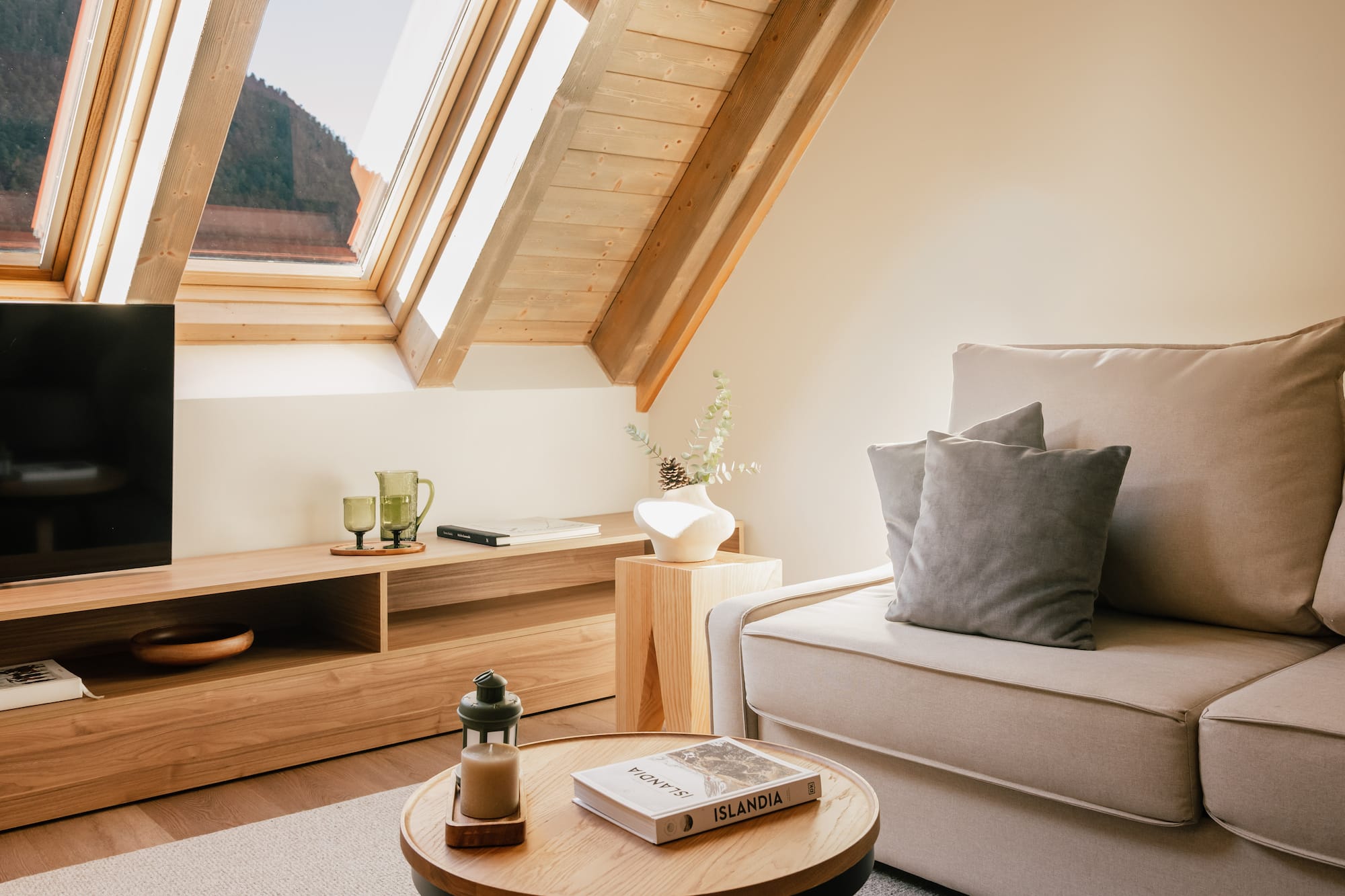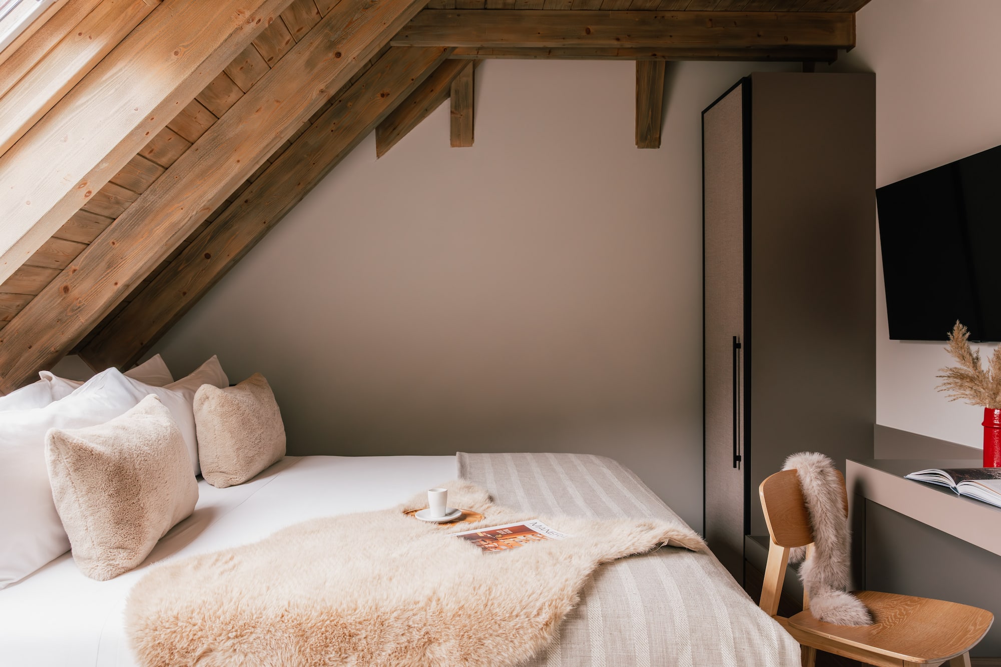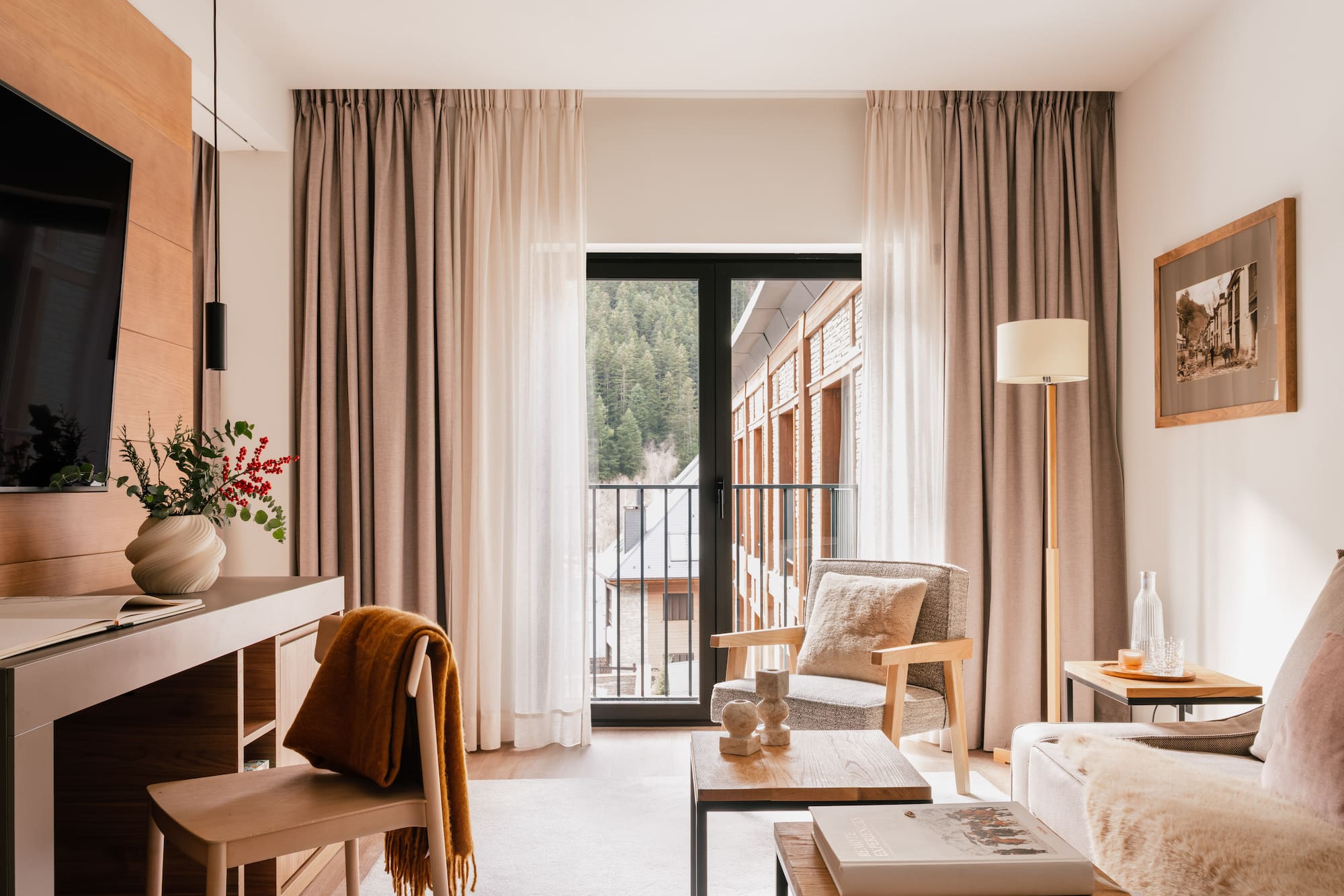 Ogni mattina, una luce intensa inonda la stanza e il legno avvolge lo spazio. Una spaziosa e confortevole camera duplex su due livelli con vista sulla Valle d'Aran. La sensazione di casa in montagna assicura eccezionali momenti di relax.