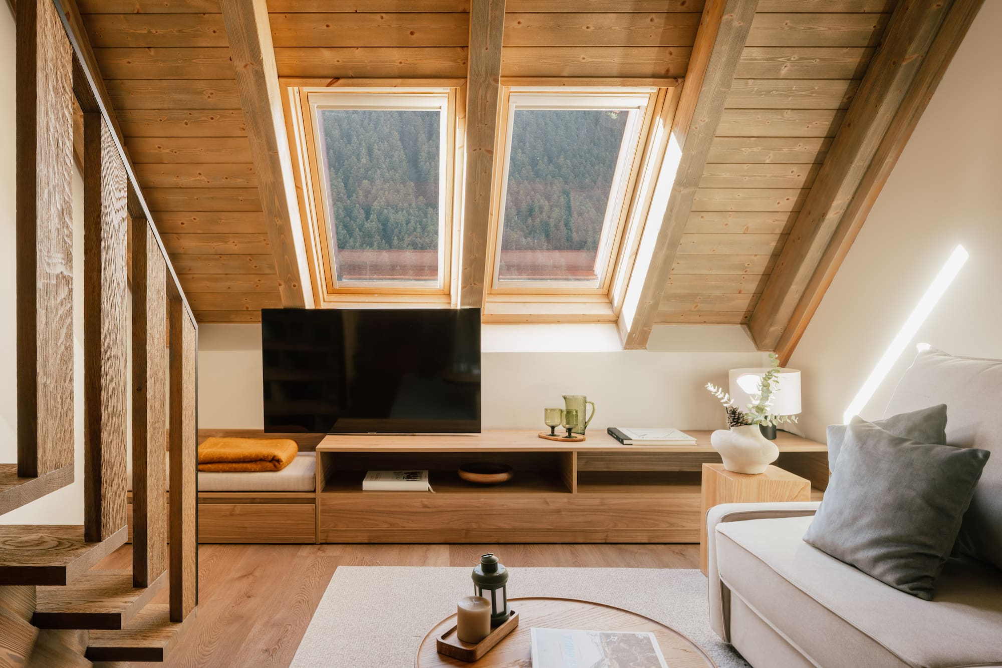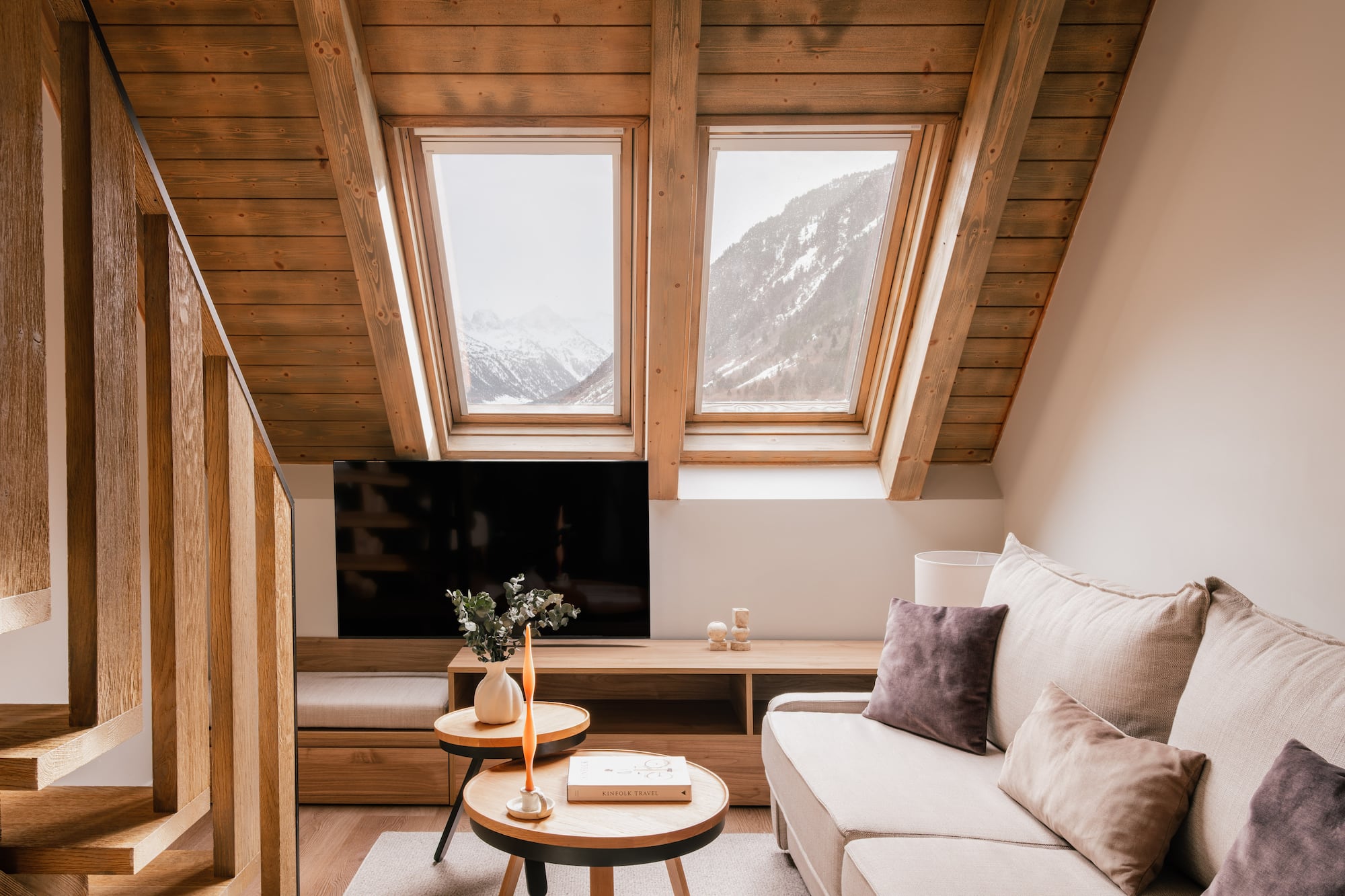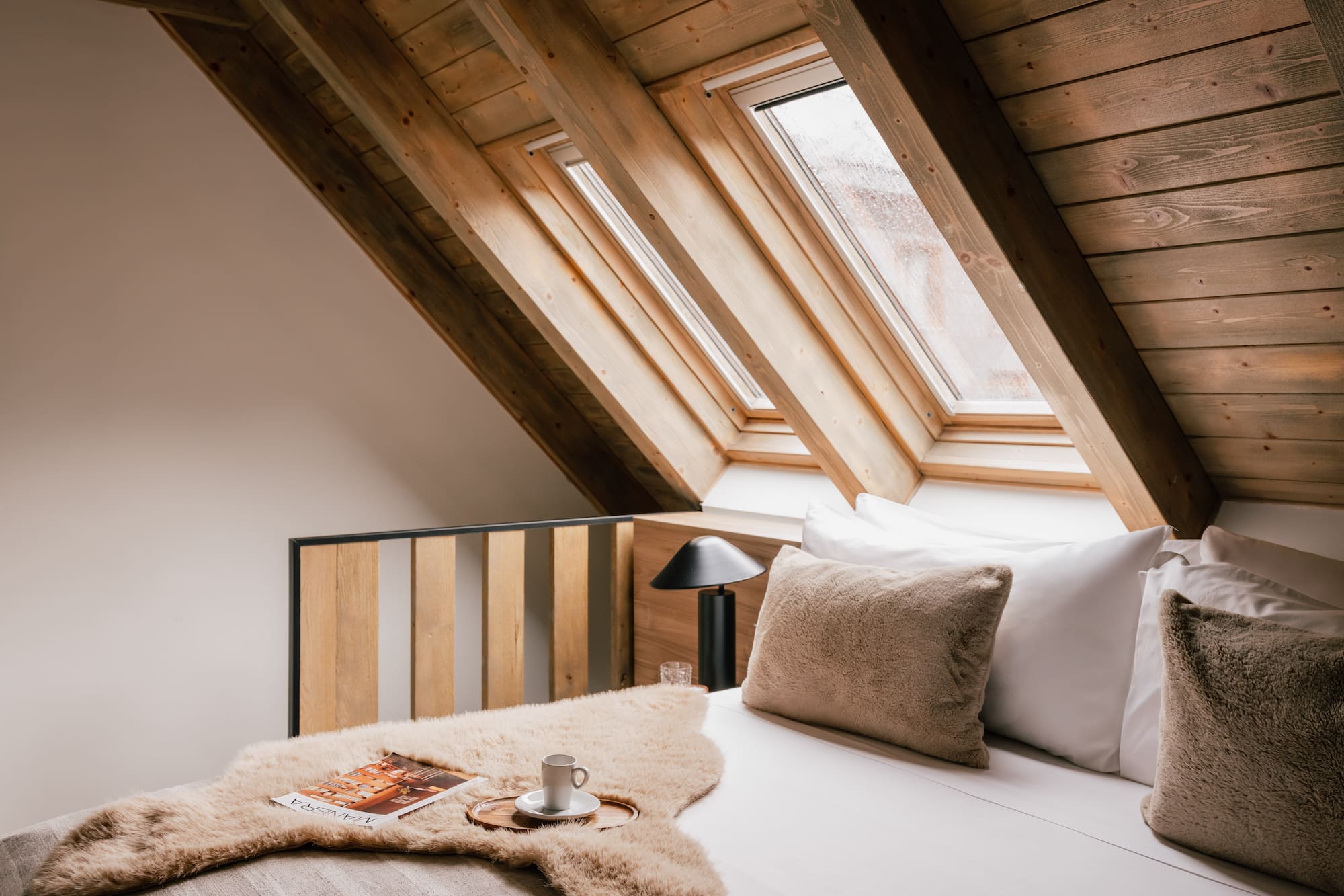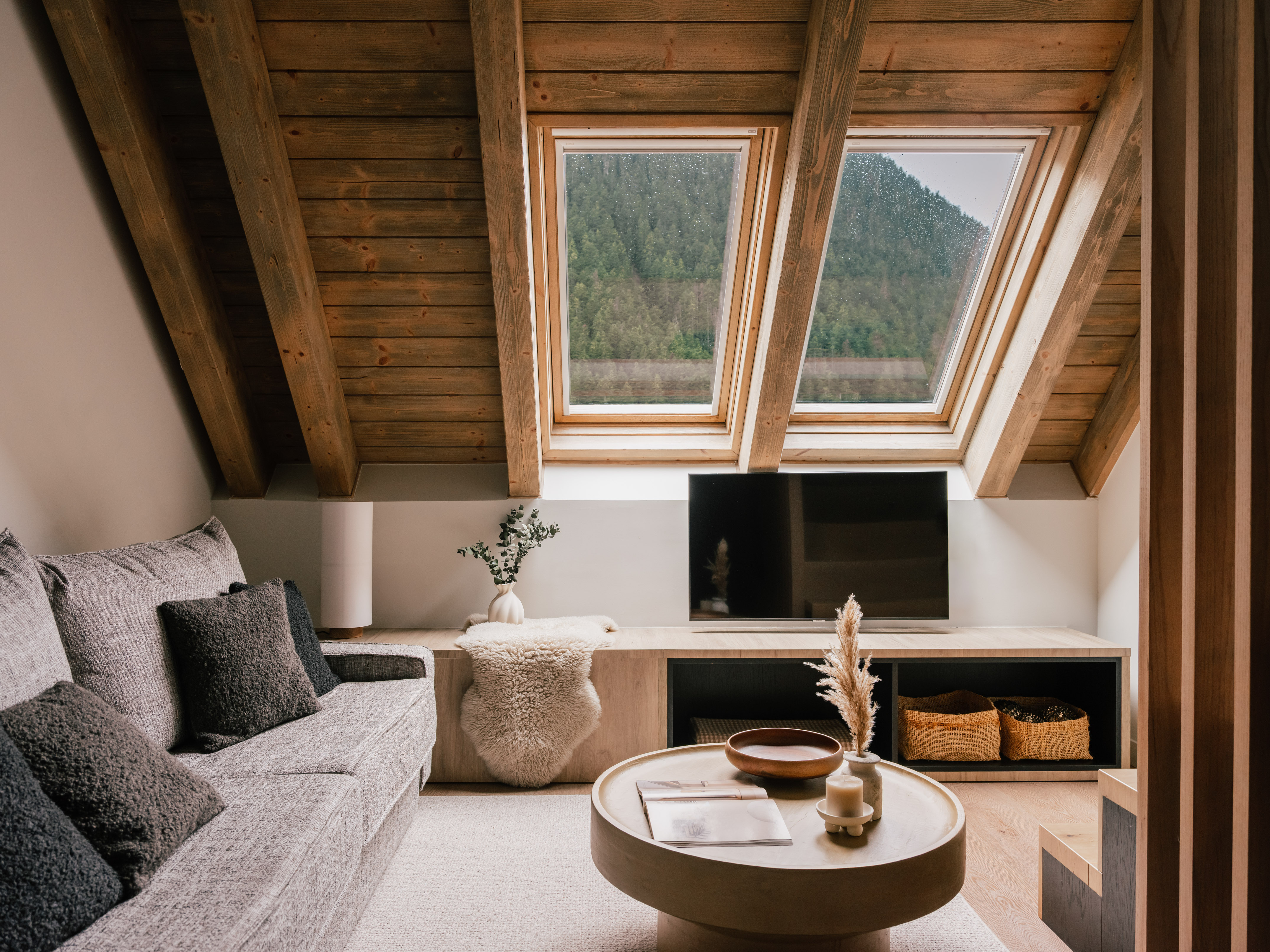 Ogni mattina, una luce intensa inonda la stanza e il legno avvolge lo spazio. Una spaziosa e confortevole camera duplex su due livelli con vista sulla Valle d'Aran. La sensazione di casa in montagna assicura eccezionali momenti di relax.