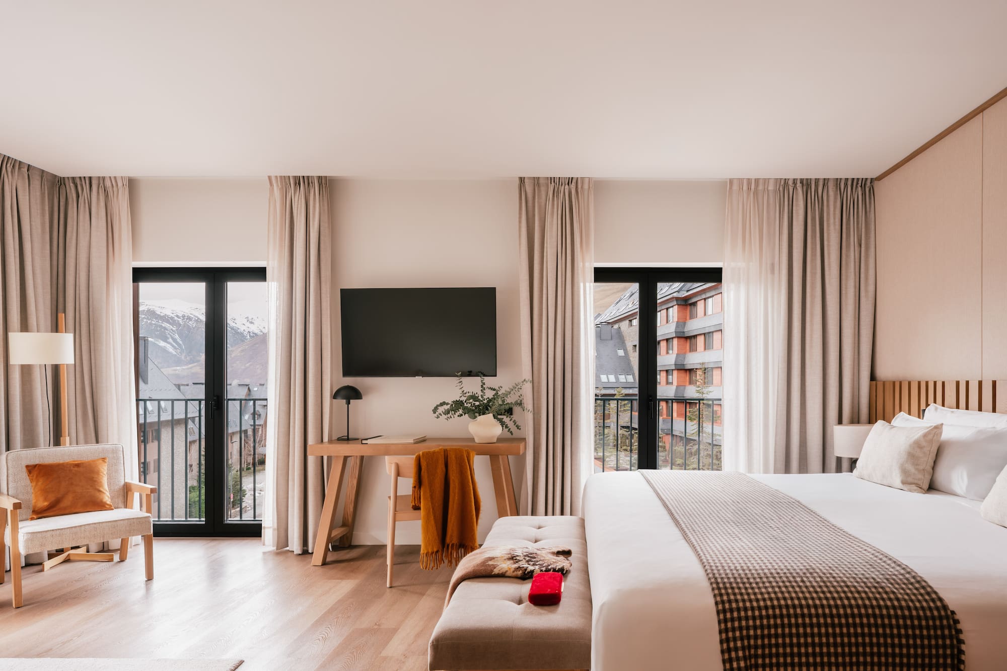Con un esclusivo design alpino, trova il perfetto equilibrio tra eleganza e comfort in ogni dettaglio. Uno spazio pieno di luce progettato per garantire un riposo profondo e riposante nei Pirenei.